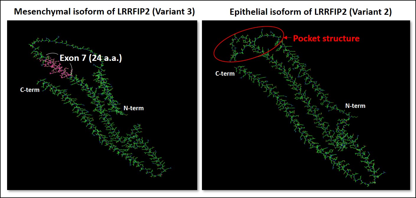 Figure 1. The predicted 3D protein structures of the mesenchymal and epithelial isoforms of LRRFIP2