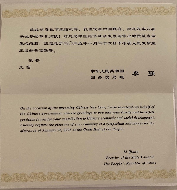 Editor-in-Chief Professor Michel Chipot was invited by the Chinese Premier Li Qiang to attend the 2025 Spring Festival Symposium.