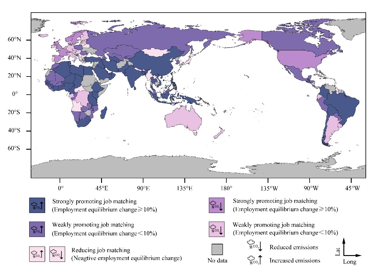 "Beyond the substantial gap between current realities and the ambitious 2°C and 1.5°C targets, the interaction between job matching and emissions patterns varies widely across nations." This creates particular challenges for nations striving to reduce poverty, expand employment, and fulfill their climate commitments at the same time.