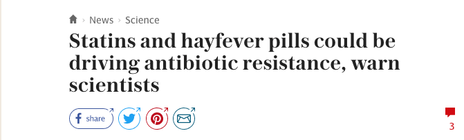 A new study in Nature tested a commercially available drug library of 835 compounds against 38 representative organisms of the human gut microbial community. Not a single antibiotic was tested and yet a quarter of the drugs had antibiotic-like activity when screened against at least one of the bacteria.