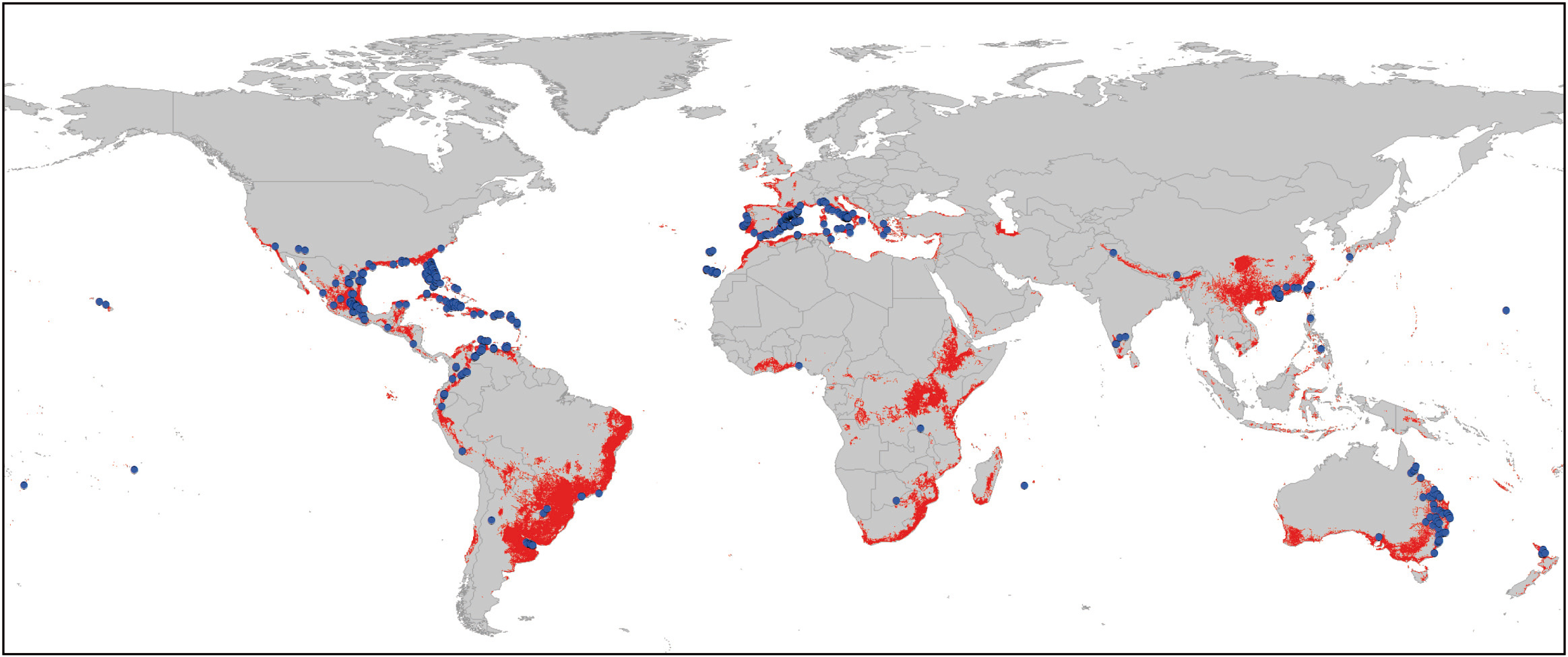 Our locality search efforts also focused on using “non-standard sources”, which proved to be rewarding. Where using exclusively “standard” sources (biodiversity web portals such as GBIF, herbaria, scientific publications, or direct observations) allowed us to compile just 62% of the total occurrences. The rest of the records were obtained from other sources, particularly the citizen science web portals (e.g. iNaturalist), but also truly non-scientific sources including photo-upload tools (e.g. Flickr), social media platforms (e.g. Instagram), and even personal blogs. Using these “non-standard sources” was ultimately of paramount importance, as they provided the only occurrences in several regions (e.g. the whole sub-Saharan Africa or the Indian Subcontinent) that would otherwise appear as “blank” in the species range map.