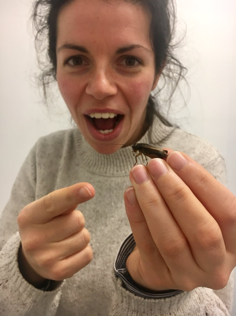 Reece lab postdoc Kim Prior getting excited over our upcoming cricket work.