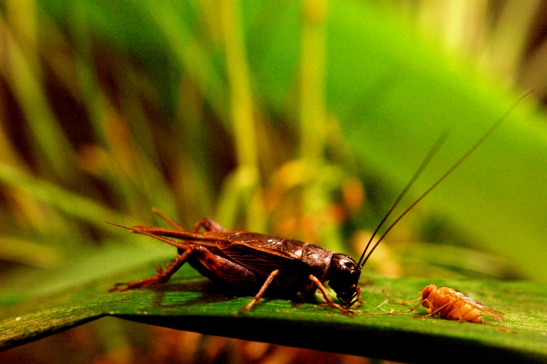 Teleogryllus oceanicus and Ormia ochracea square off. Photo credit to Norman Lee.