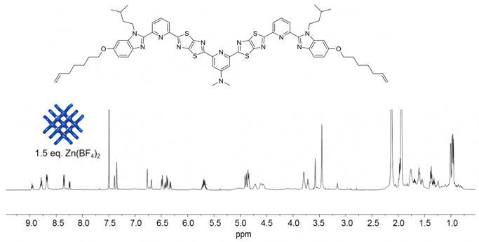 Fig. 2. 1H NMR (600 MHz, 298 K) spectra of titration of a ligand strand design with Zn(OTf)2 in CD3CN/CD2Cl2.