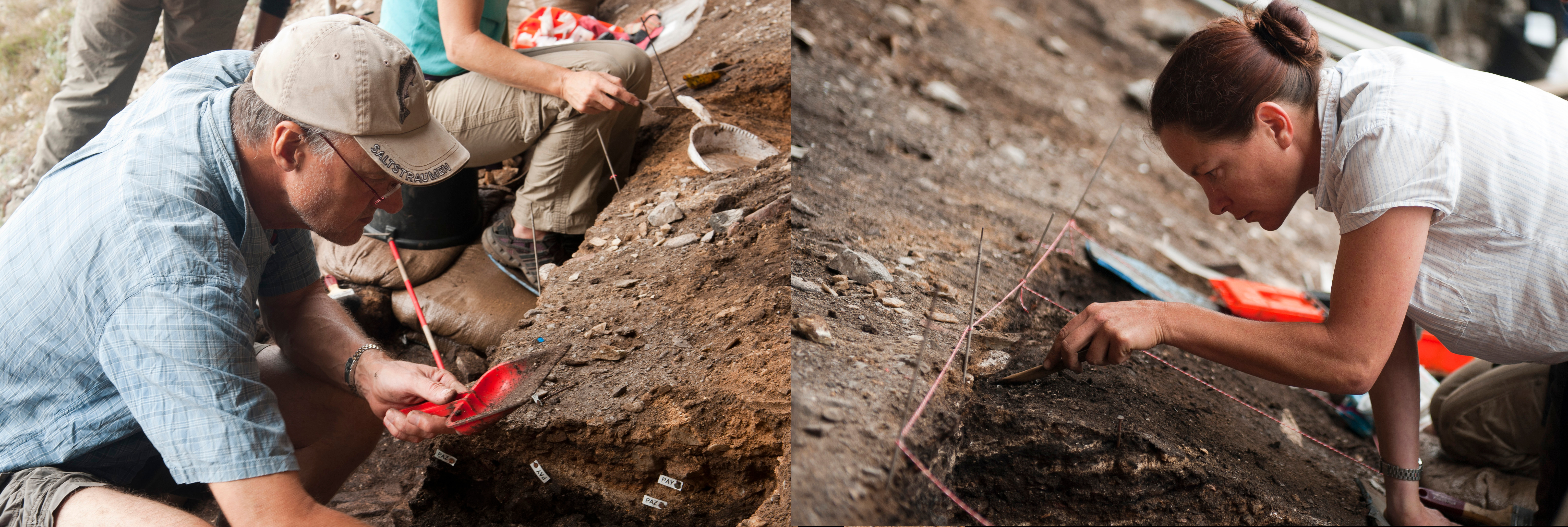 Blombos Cave has been excavated by two of us, Christopher Henshilwood and Karen van Niekerk, since 1991, and contains material dating from 100 000 – 70 000 years ago, a time period referred to as the Middle Stone Age, as well as younger, Later Stone Age material dating from 2000 – 300 years ago. Christopher holds a Research Chair at the University of Witwatersrand in South Africa, and is the Director of a newly granted Centre of Excellence at the University of Bergen, Centre for Early Sapiens Behaviour (SapienCE), and Karen a Principal Investigator at SapienCE.