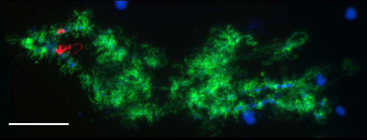 When we first started working with zebrafish oocytes, our initial experiments resulted in condensed lampbrush chromosomes with short lateral loops and massive chromosome axes. And it was a bit frustrating, because in amphibian and bird oocytes we usually get "fluffy" long chromosomes with extended lateral loops. So we tried switching to smaller translucent oocytes, or oocytes that had just started to accumulate yolk, and suddenly we were seeing 'real' lampbrush chromosomes - relatively long with defined lateral loops and tiny chromomeres. Such a picture can make a lampbrushologist feel quite satisfied.