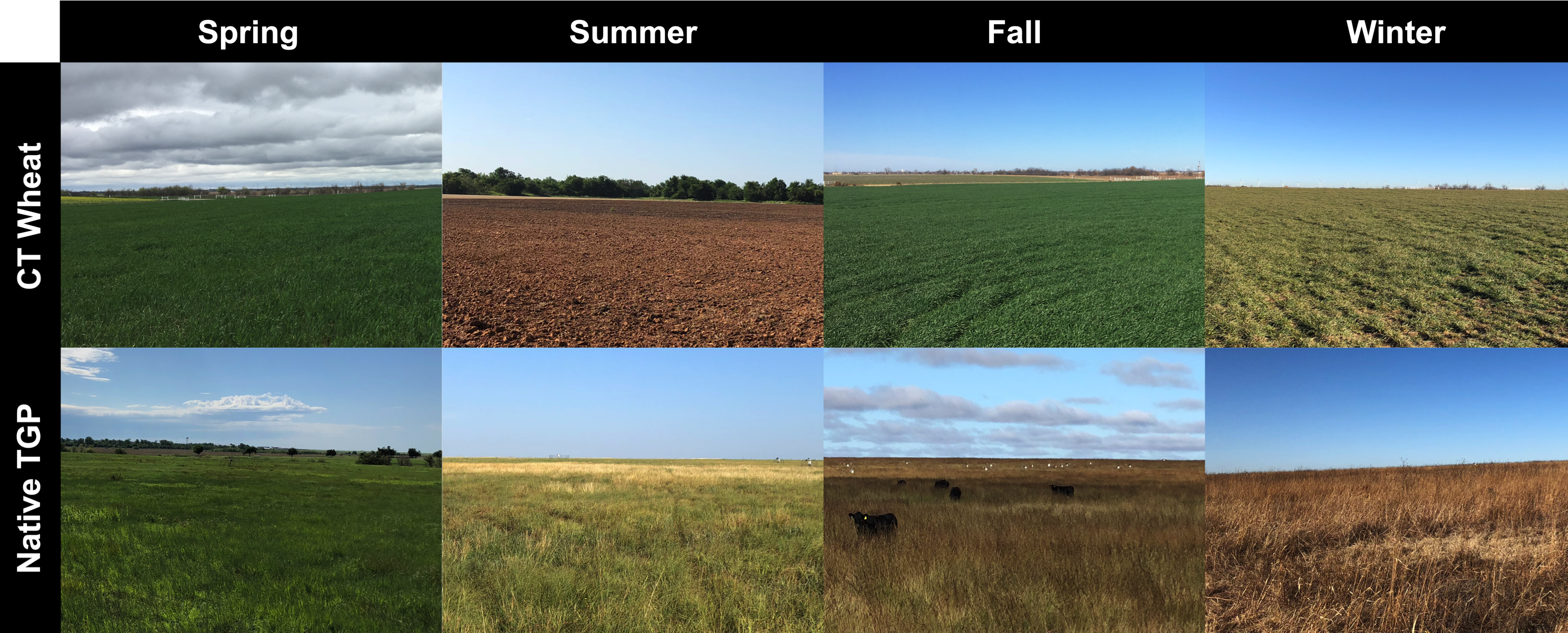 Therefore, we aimed to understand whether and how native land use conversion for long-term cropland affects the complexity and stability of soil microbial community networks by examining the soil microbial communities in native tallgrass prairie (TGP) and conventionally tilled (CT) winter wheat site in the U.S. Southern Plains in El Reno, Oklahoma. Considering land management is also strongly linked to seasonality, we examined the networks over 19-months to inspect the temporal dynamics. The study site has a temperate continental climate with summer months generally hot and dry and most rainfall occurring during May-June and September-October.