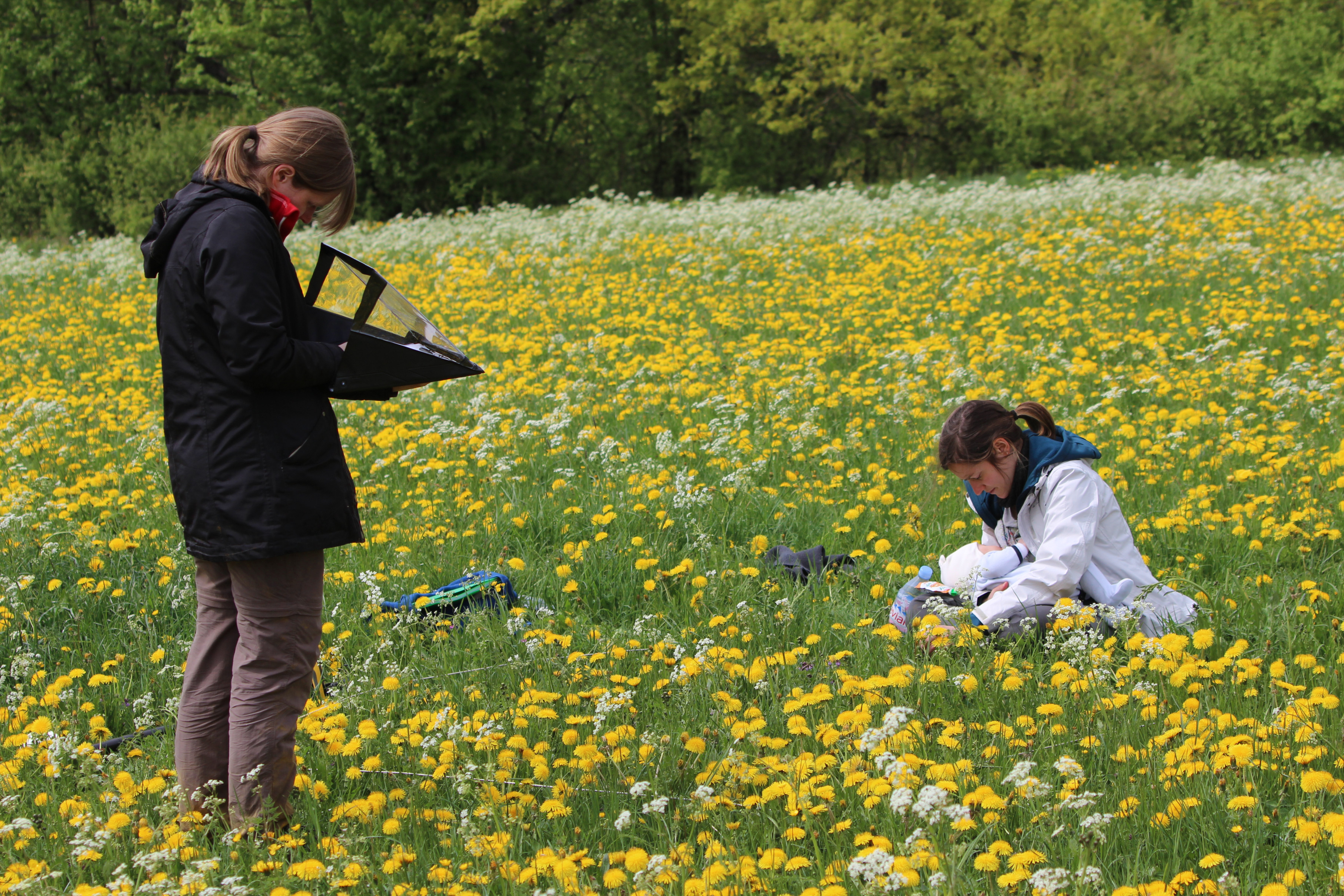 We also collected our own data on the plant diversity surrounding the plots in 2017 and 2018. I will always remember the fieldwork campaign of 2018: a very special campaign for me as we were traveling with a van in the German countryside for several months with my 3-month old son, Lucien, and I was trying to identify grasses while carrying him (Fig. 2), which was not an easy task.