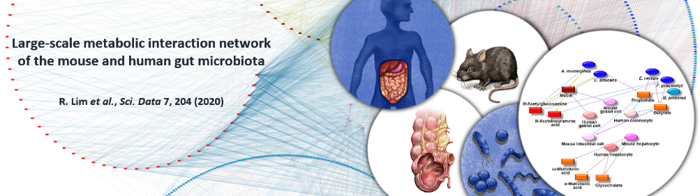 In 2017, I and my team members, especially Dr. Jaeyun Sung (currently at Mayo Clinic), published a global metabolic interaction network of the human gut microbiota. Like a jungle, or a society in some sense, gut microbial cells closely interact with each other and with human tissues. Dietary compounds and host-derived molecules, such as plant fibers and mucins, are broken down by microbes and then released to other microbes as smaller molecules for uptake. Additionally, microbes compete for the same nutrients with each other, or thrive by consuming metabolic byproducts secreted by other microbes. The microbial metabolic byproducts are also absorbed by the intestine, exerting beneficial or harmful effects on the human body. Our 2017 paper presented such a metabolic interaction network of >500 microbial species and 3 human cell types, primarily based on experimental evidence collected from about 400 publications. This network aimed to provide a large overview of microbe-microbe and microbe-host chemical crosstalk inside a human gut, and to help the scientific understanding of microbial innerworkings in particular conditions of interest, as exemplified through type 2 diabetes patient analyses in the 2017 paper.
