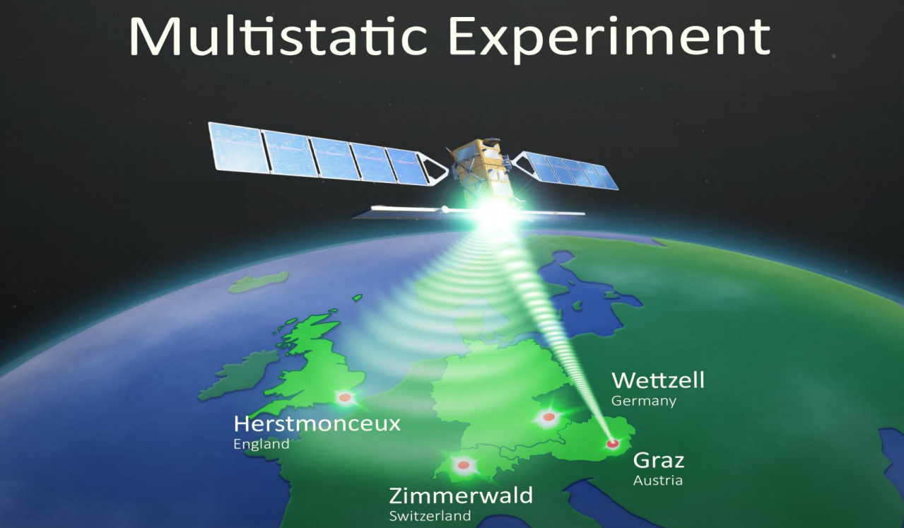 During multistatic space debris measurements one station fires laser pulses on space debris objects while multiple other stations detect the photons which are distributed across Europe after reflection. With such measurements improved orbital predictions can be calculated.