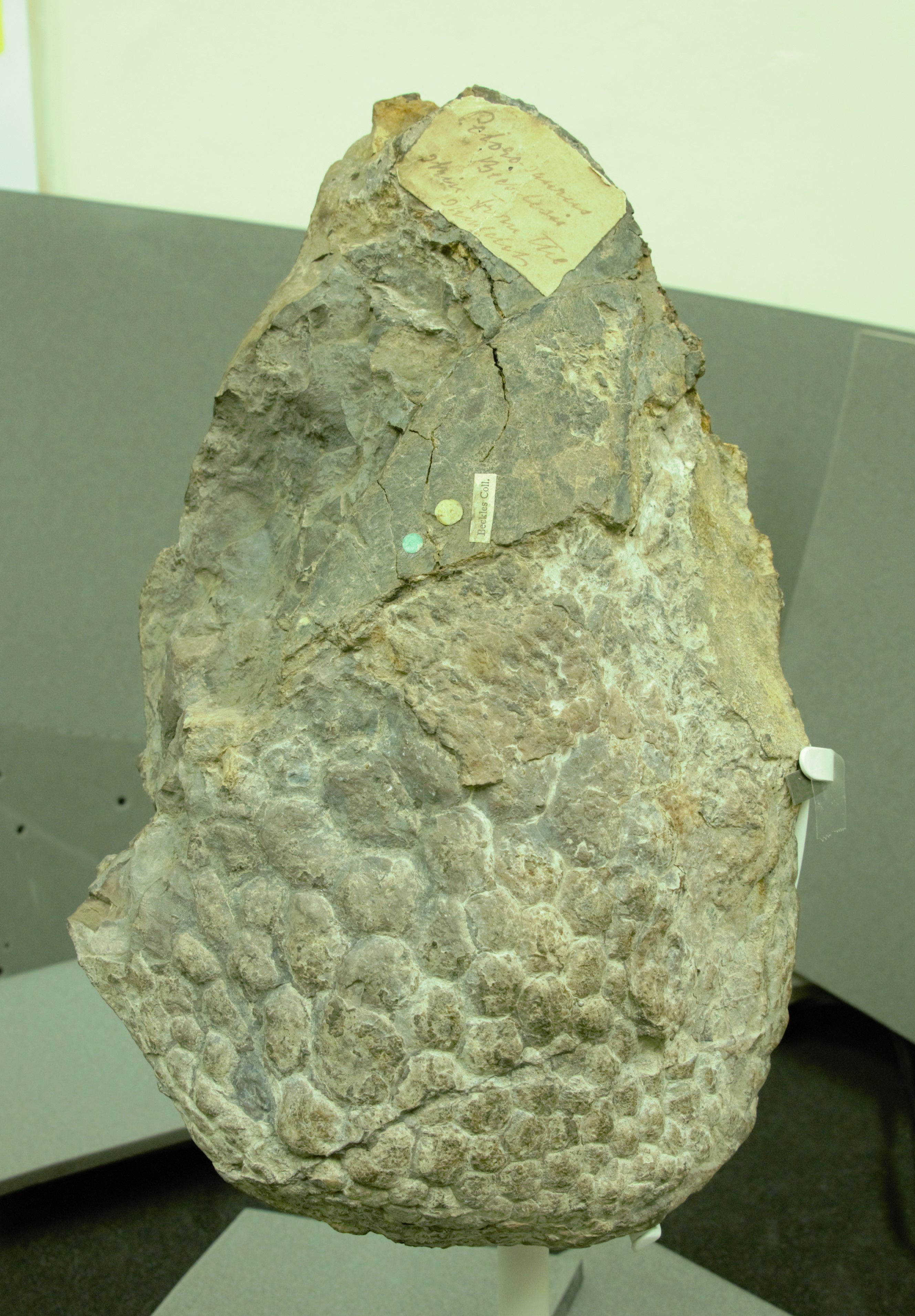 Fig. 2. Part of the original specimen of Haestasaurus (NHMUK R1868) showing preserved scales. NHMUK R1868 resides in the Natural History Museum, London. Specimen height is ~30cm.