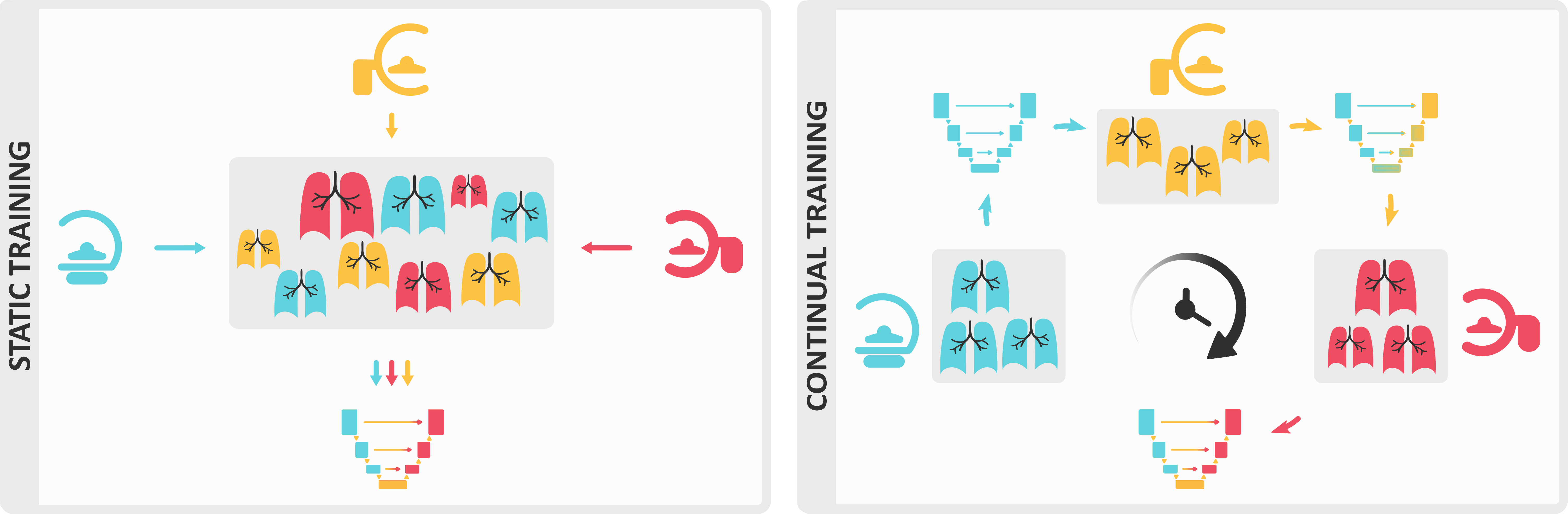 Most research and product development in medical AI focuses on designing static systems for a dynamic clinical world. This disparity often leads to unwanted consequences, such as abrupt drops in performance post-deployment1,2. Over time, as acquisition standards and patient populations change, models trained with an outdated data distribution become unreliable and unsuitable for clinical use.