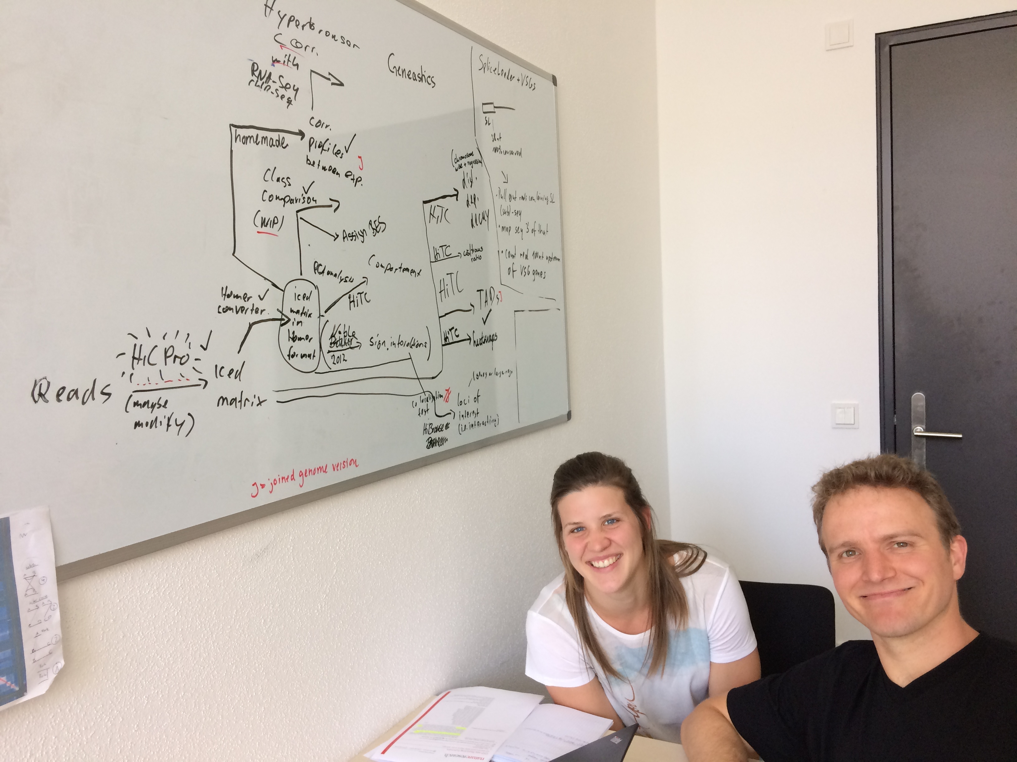 Laura and Konrad in the process of setting up pipelines to analyze our Hi-C data.