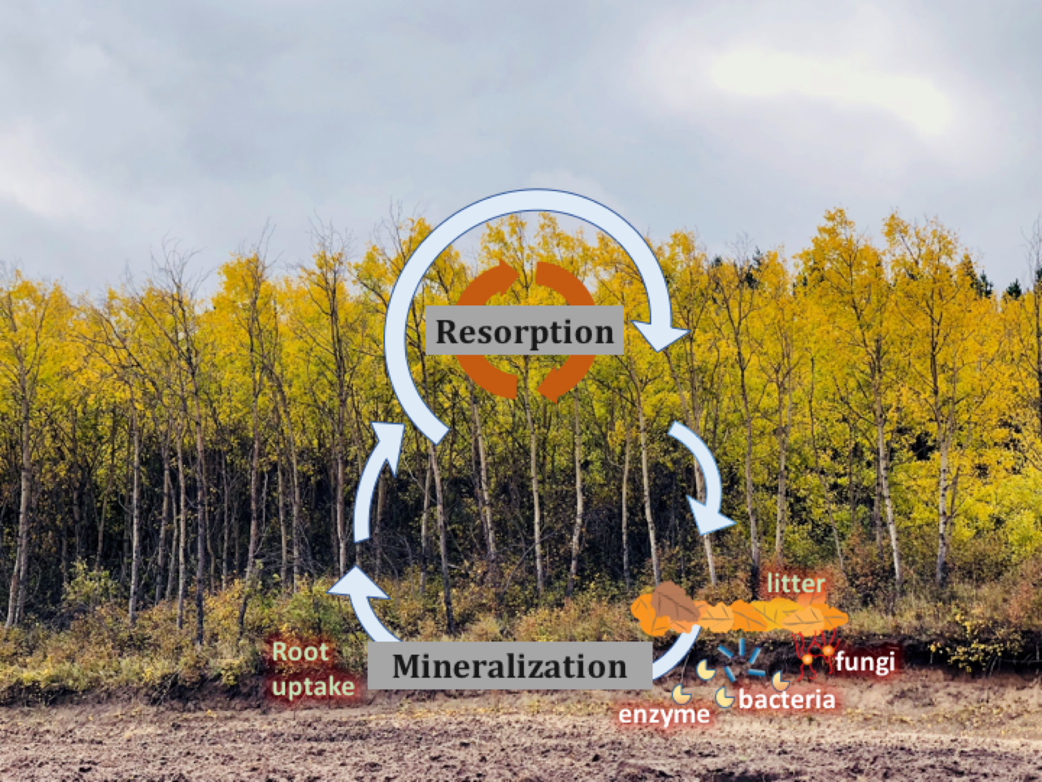 Fig 2. N resorption and N mineralization are among the two most important processes determining ecosystem N supply and productivity2. (Credit: Lingli Liu)