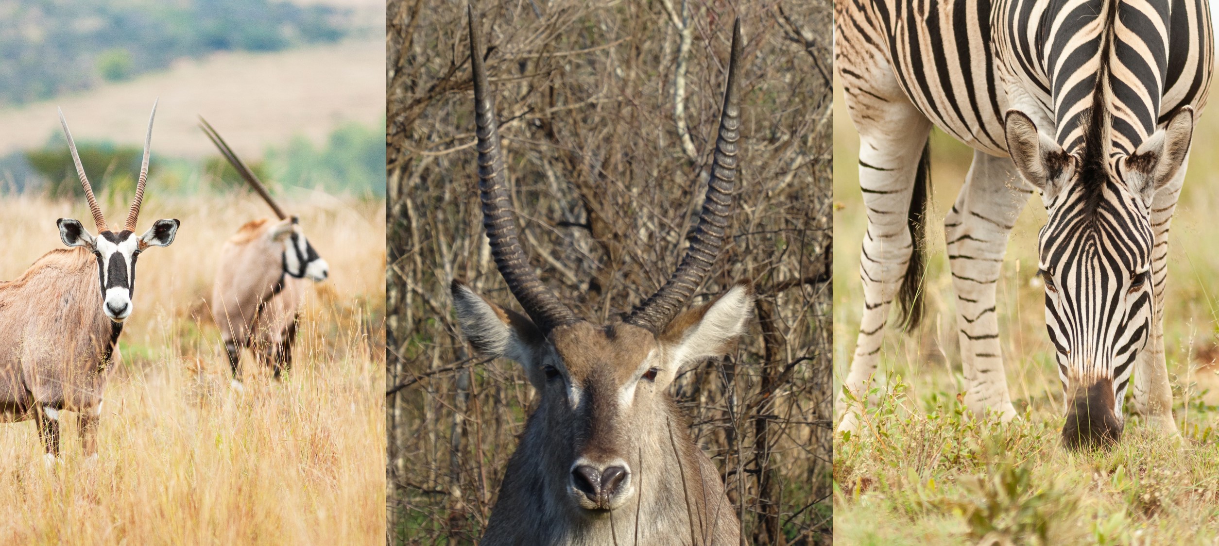 Waterbuck, gemsbok and zebra changed their daily activity patterns most when lions were present. Photo credit: Tim Hofmeester (gemsbok and zebra)
