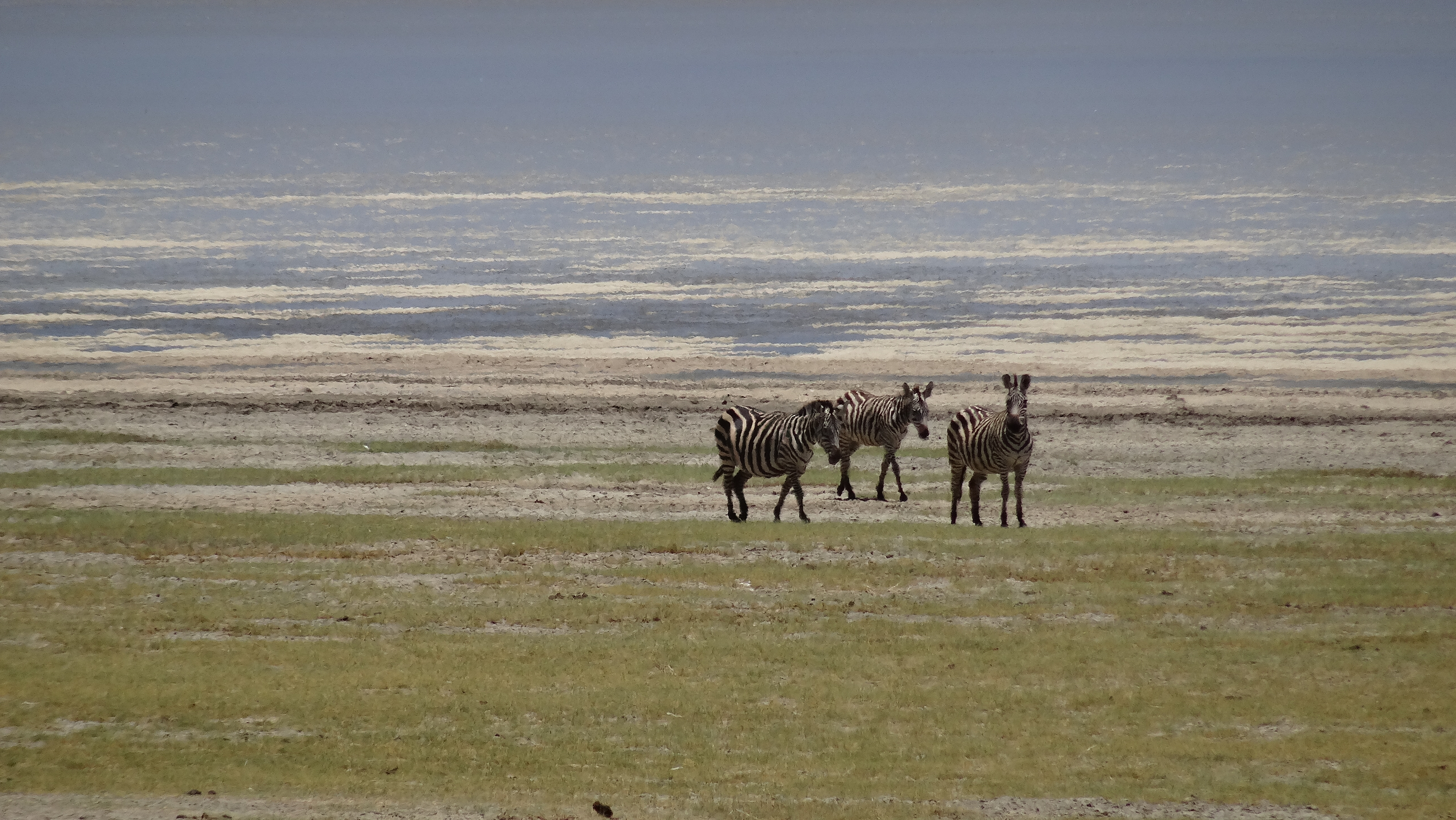 Zebra's walking in the heat at noon in Lake Manyara National Park, Tanzania.