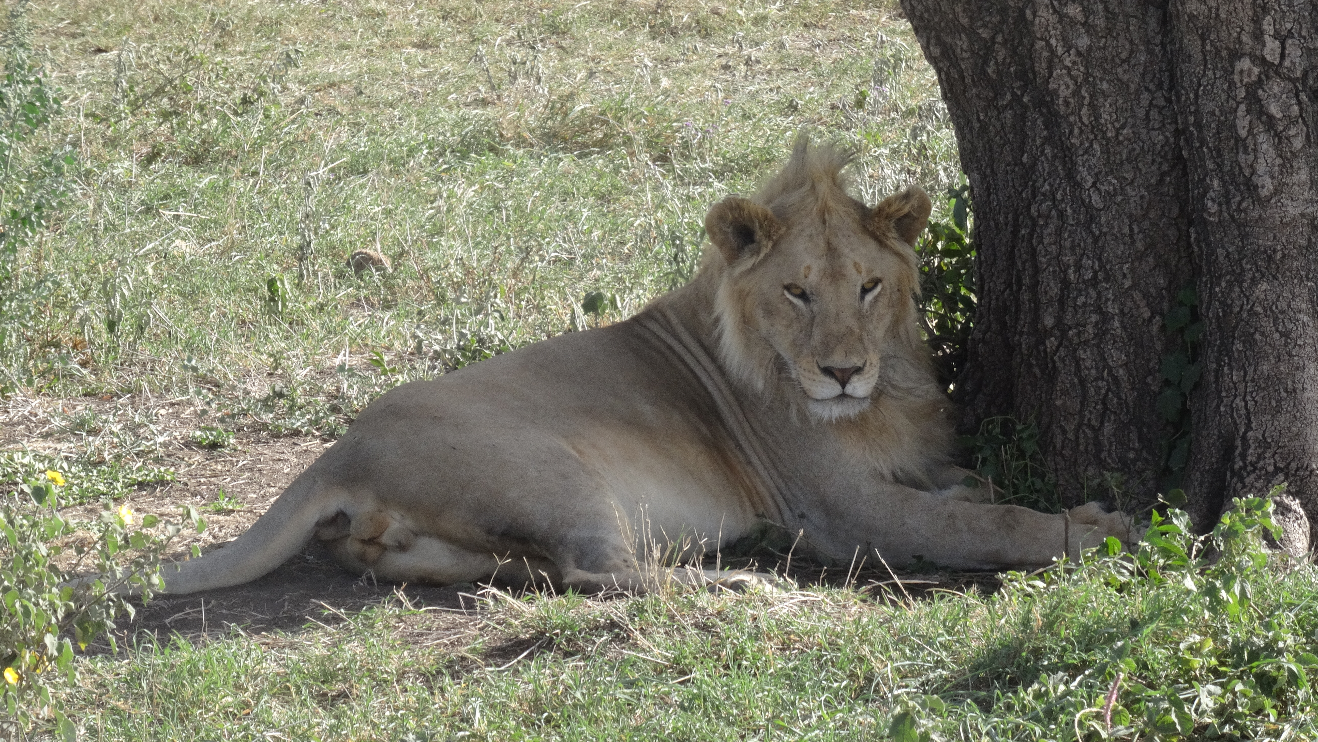 Male lion resting in the shade during daytime in Serengeti National Park, Tanzania.