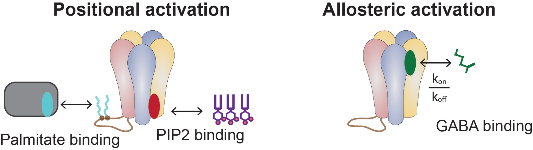 And so it it with GABAAR. We can give GABA, but sometimes the receptor doesn’t open, for example in a purified membrane. Other times, e.g., in the presence of an anesthetic like propofol it open without GABA. Up until now we have only thought about direct allosteric activation by GABA , we’ve been missing a player, in this case an opportunity to regulate or potentially active the receptor based on its position