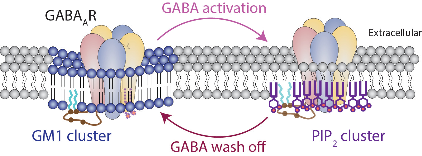 But their combined role—a toggle between lipid domains dictating receptor activity—was unexplored. Using super-resolution imaging, we saw GABAAR physically shift from saturated to unsaturated lipids upon activation (Figure 1). Crucially, this movement was triggered not just by anesthetics, but by GABA itself, suggesting positional regulation is intrinsic to neurotransmission.