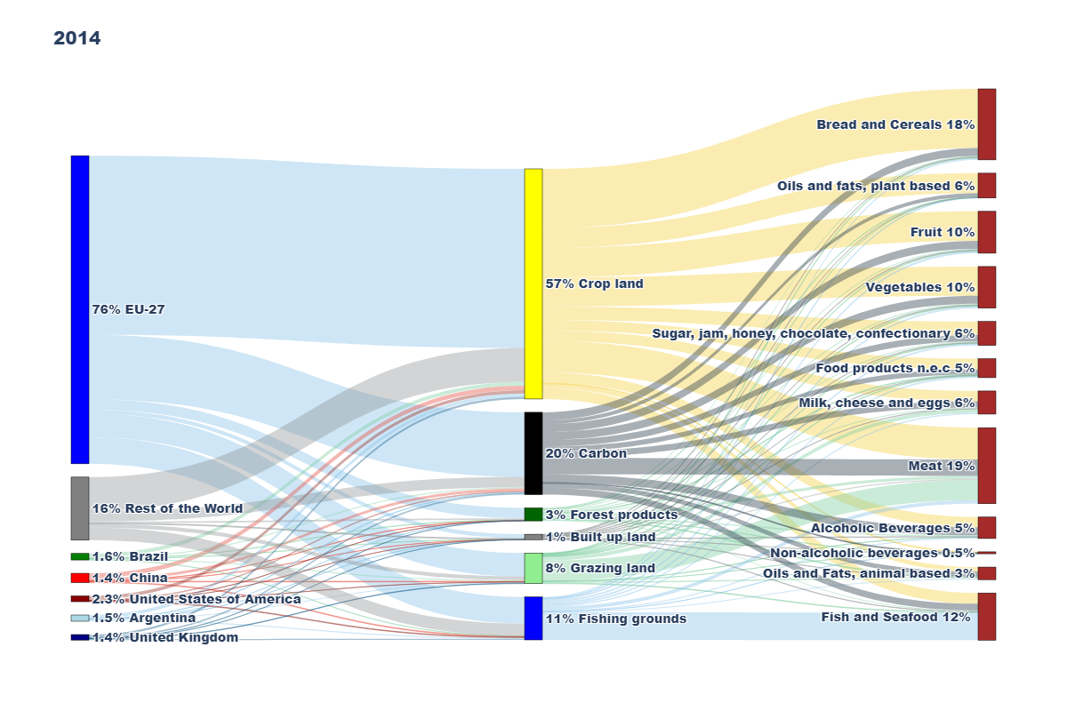 Our new study - bringing evidence on the role of food in driving our Ecological Footprint, while unravelling the extent to which biocapacity (i.e., biomass and ecosystem services) for food consumption originates from within or outside the EU - aims to provide insight into getting sustainable food on our plates. Our research indicates the need for designing, implementing and enforcing policies across different sectors that promote and support food system transformation. The study points to the need for urgent policy interventions across food production and consumption, and the associated environmental impacts along the supply chain. This is needed to advance towards the EU Green Deal and the Farm to Fork strategy, which ambitiously put the EU at the forefront of the climate change challenge and the transition to a net-zero greenhouse gas emissions economy.