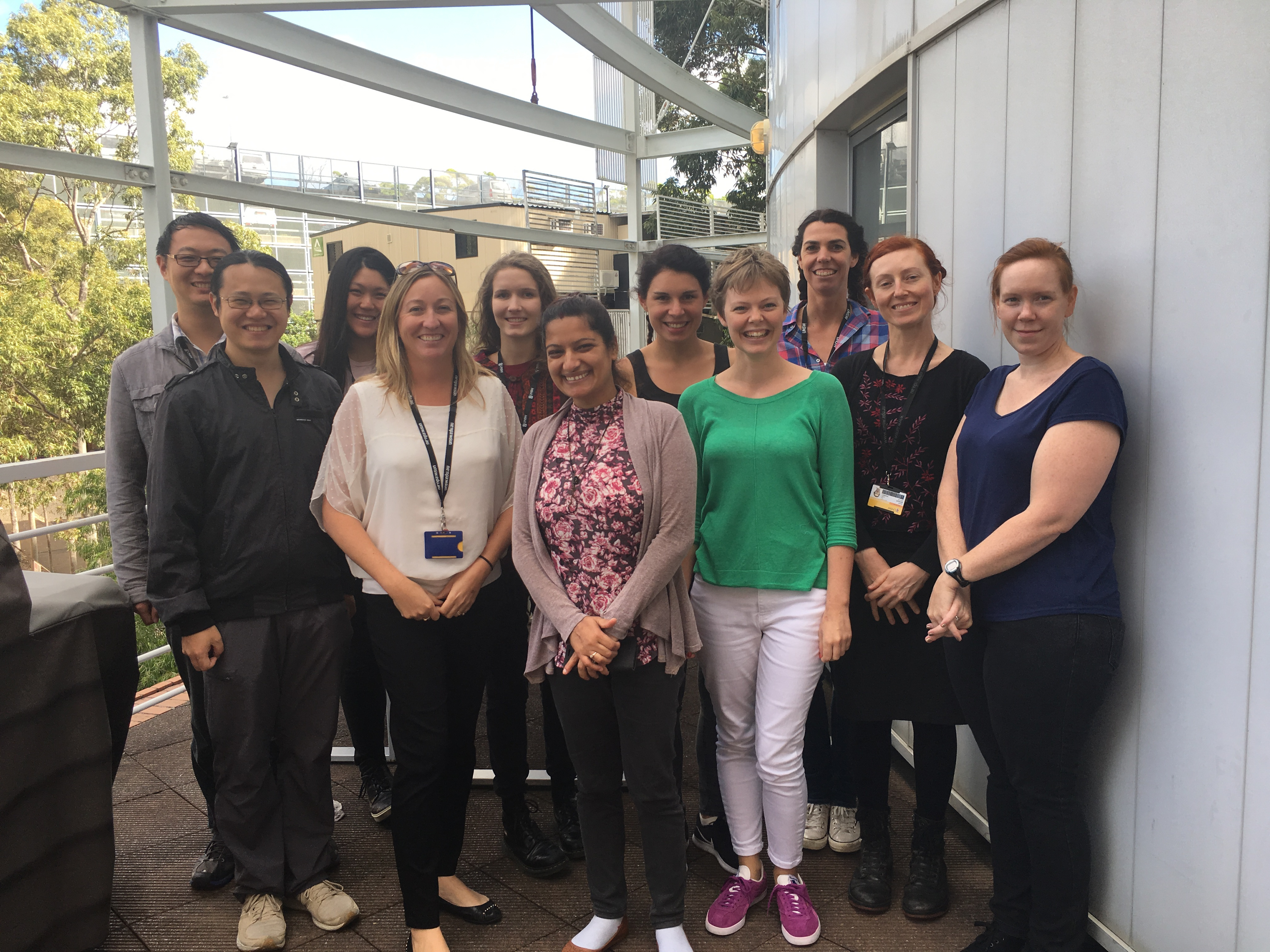 Belinda Ferrari’s Research Group. Back Left to Right: Dr Mukan Ji, Eden Zhang, Angelique Ray, Catharina Vendl, Dr Josie van Dorst. Front Left to Right: Chengdong Zhang, Associate Professor Belinda Ferrari, Sarita Pudasaini, Sally Crane, Nicole Benaud and Kate Montgomery.
