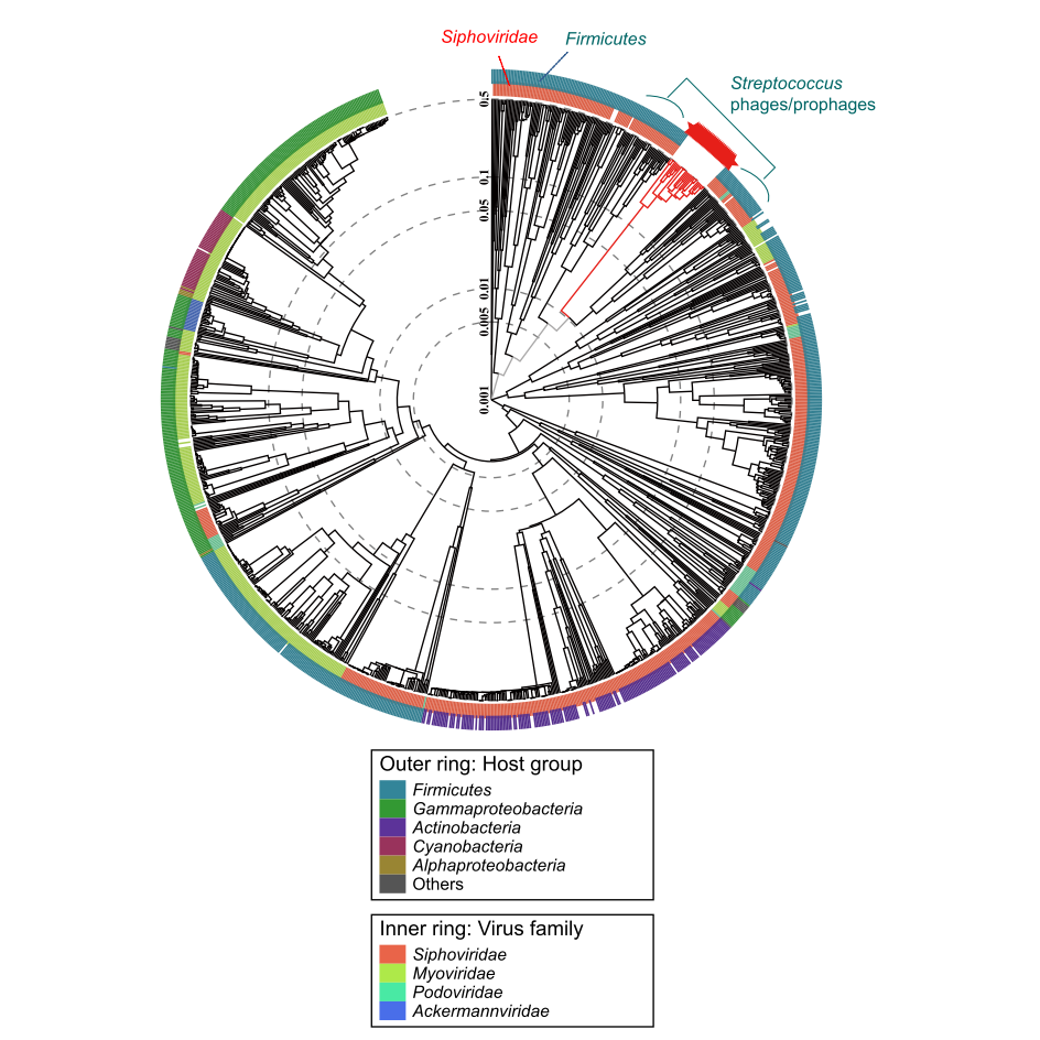 Figure 2. A group of high coverage oral phages/prophages (red at the top right)