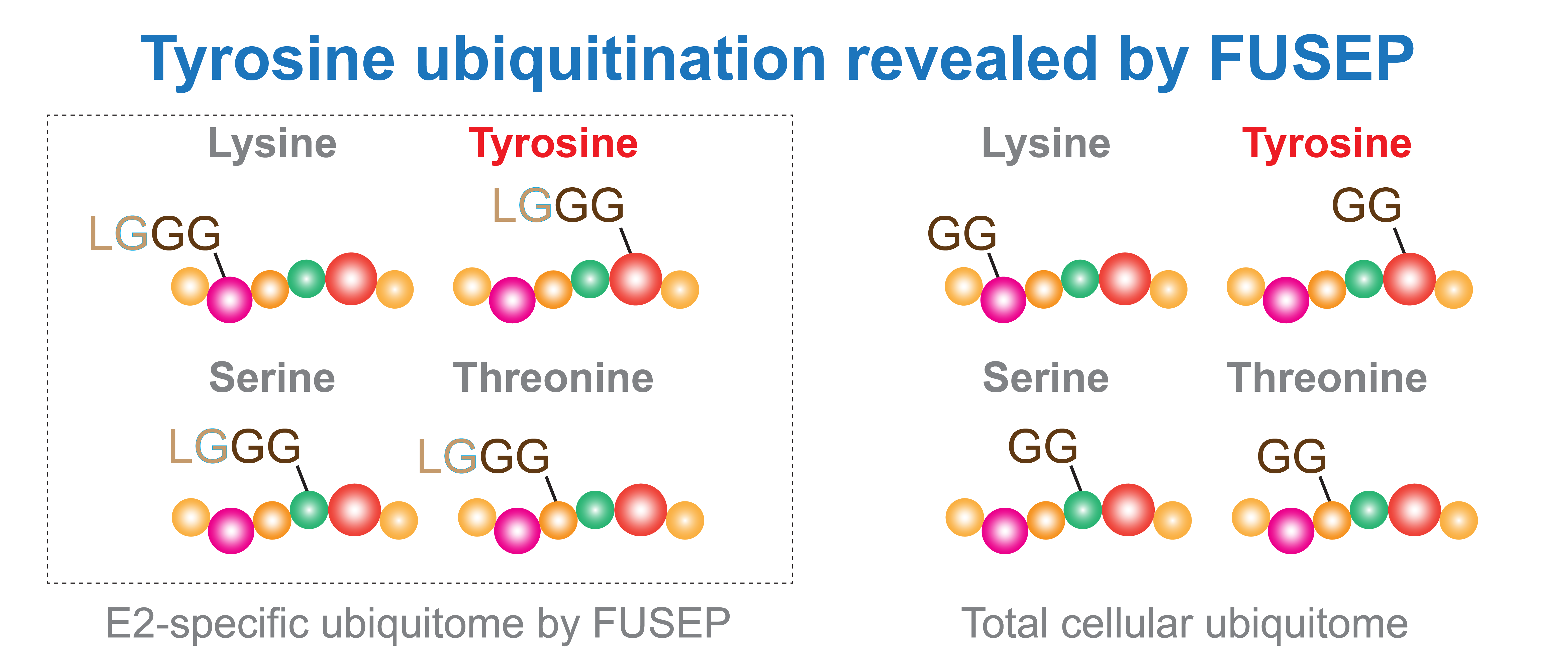 Figure 3. Fusion E2-Ub-R74G profiling (FUSEP) enabled the analysis of the E2-specific ubiquitome, separate from the total cellular ubiquitome, and identified evidence of tyrosine ubiquitination using a higher pH buffer.
