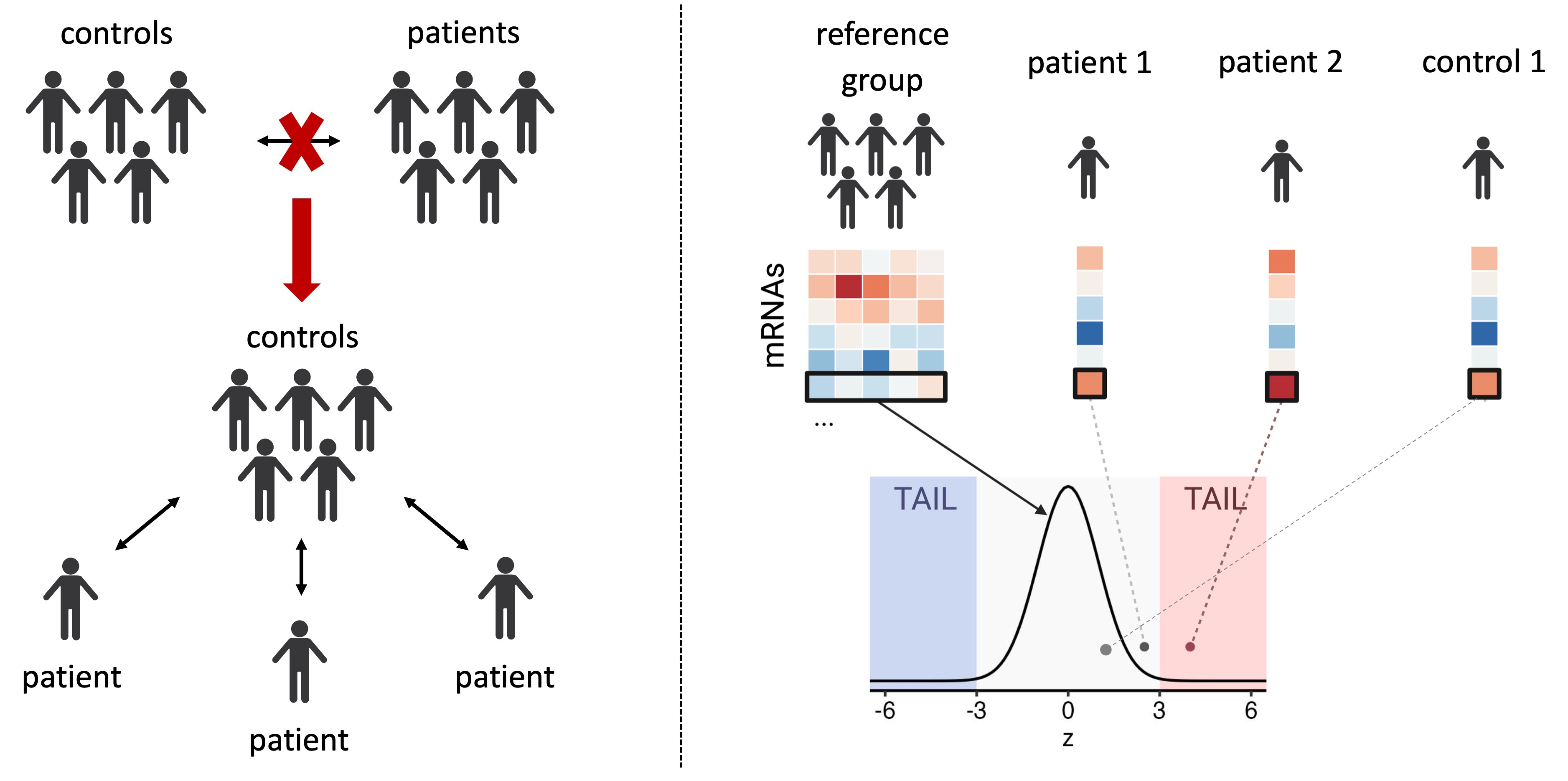 Rather than searching for genes that are consistently different on average between patients and controls, we shifted to a patient-centered perspective: what stands out in an individual sample? For each gene, we compared its abundance in a patient’s plasma to the distribution observed in healthy individuals. Genes that fell far outside the typical range - either much higher or much lower - were labeled as “tail genes.”