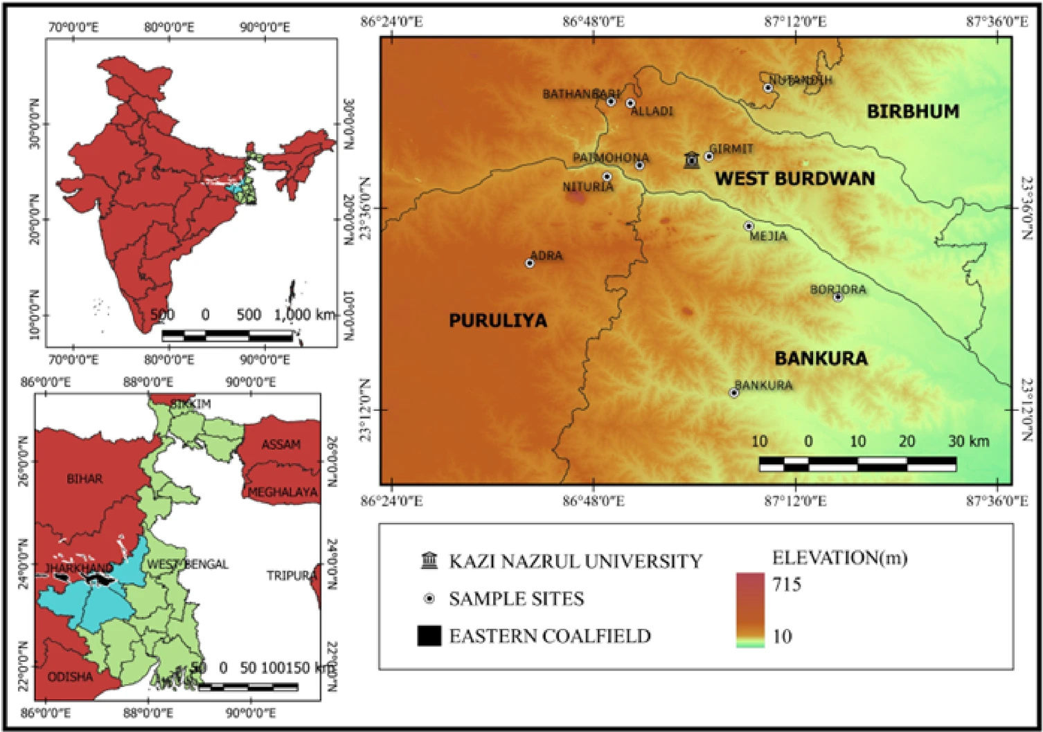 Districts and topology of Eastern Coalfield districts of West Bengal, India. Source: Chakraborty et al., 2026