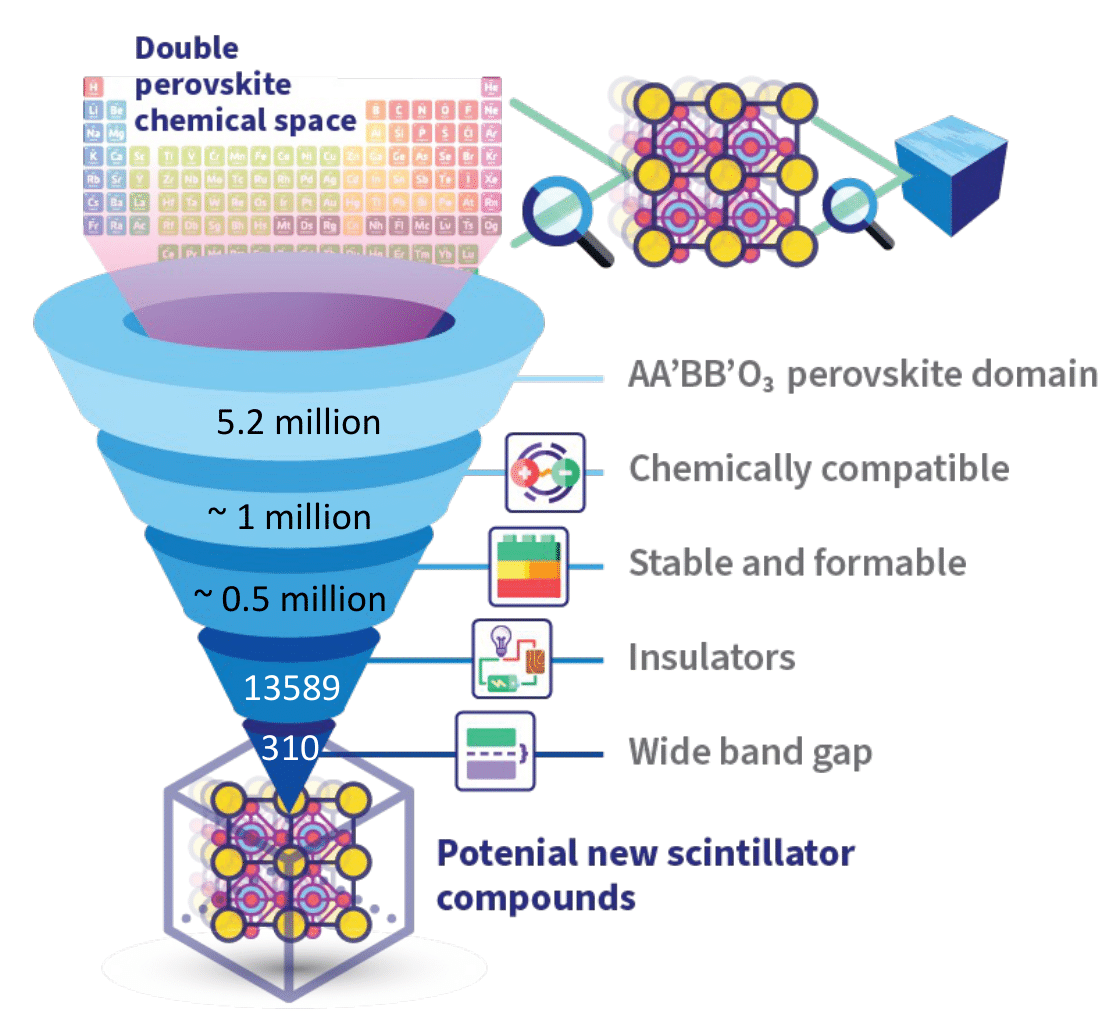 Historically, new detector materials have been predominantly developed through resource intensive trial-and-error techniques, typically requiring about 10 years from discovery to deployment. While this approach has had success, it leaves a vast space of potentially revolutionary materials unexplored. Scintillators have diverse applications - ranging from medical imaging (for instance, they are used in CT scanners), to X-ray security, to space applications.