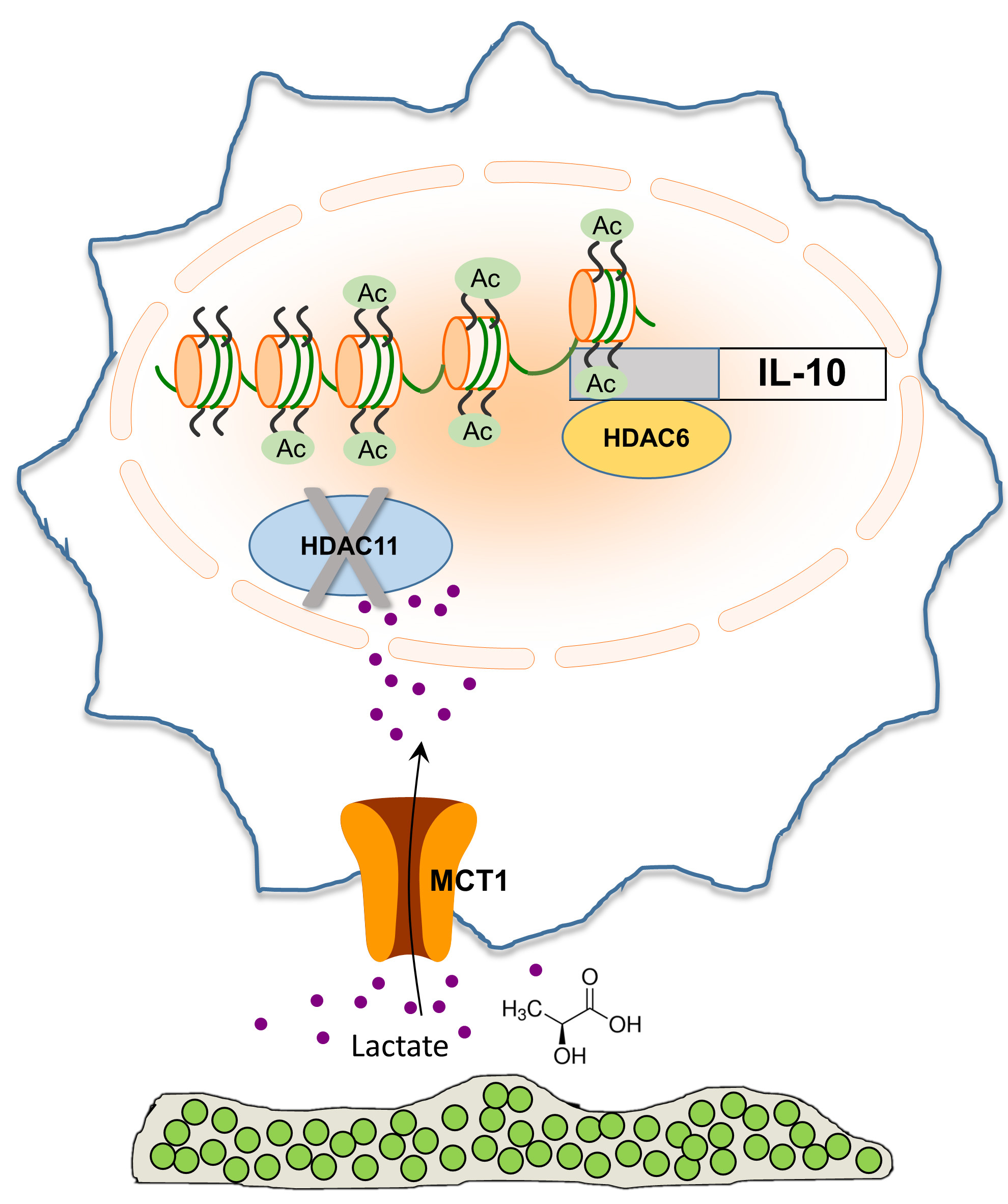 Figure 2. S. aureus-derived lactate inhibits HDAC11, resulting in unchecked HDAC6 activity that drives IL-10 production.