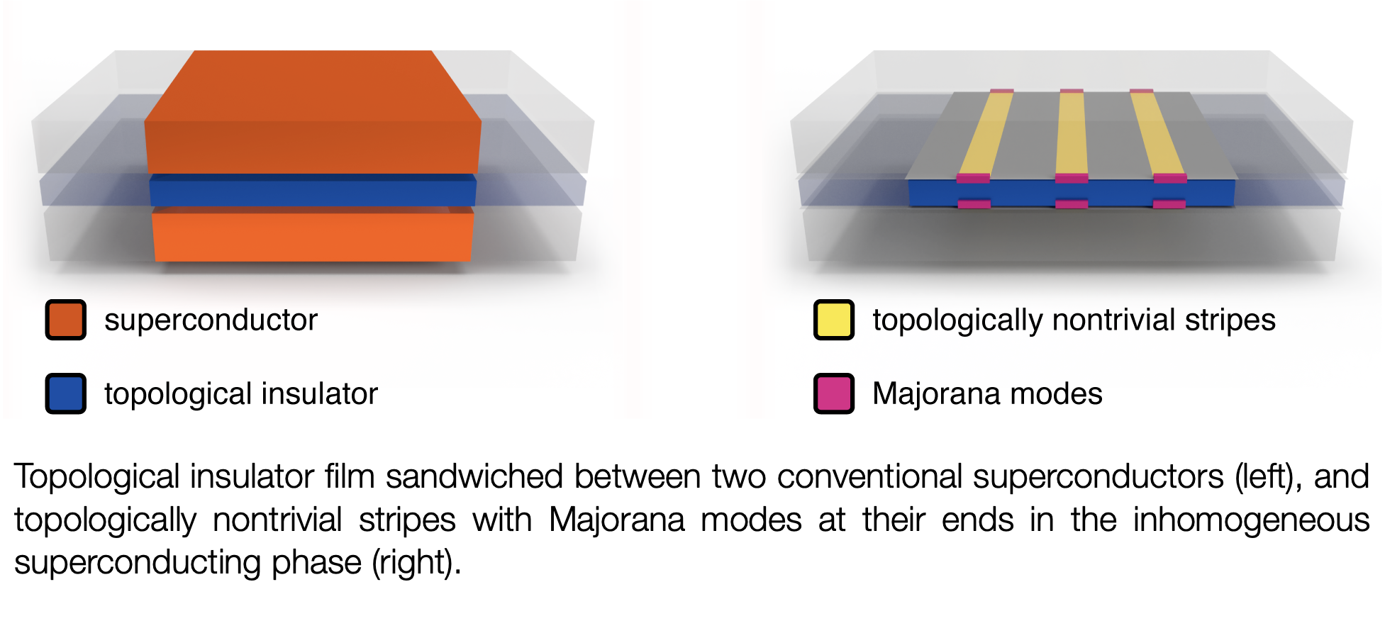 In our work, we mainly focus on creating topologically nontrivial stripes in a platform obtained by sandwiching a topological insulator thin film between two conventional superconductors. However, topologically nontrivial stripes may also be created in other systems, employing inhomogeneous superconducting orders in strontium ruthenate, iron pnictides, organic superconductors, two-dimensional electron gases, and two-component cold atomic Fermi gases with population imbalance and effective spin-orbit coupling. Finally, the experimental detection of Majorana zero modes at the ends of topologically nontrivial stripes would also provide indirect evidence of inhomogeneous superconductivity.