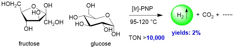 Scheme 1. Hydrogen production from fructose and glucose. For the details, see: Li, Y.; Sponholz, P.; Nielsen, M.; Junge, H.; Beller, M. ChemSusChem 2015, 8, 804.