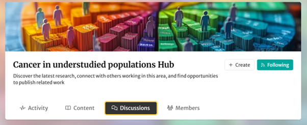 The Discussions section of the Hub is your space to share ideas, ask questions of the Editorial team, join conversations and learn from others working in this area. You will find it by clicking ‘Discussions’ at the top of the Hub.