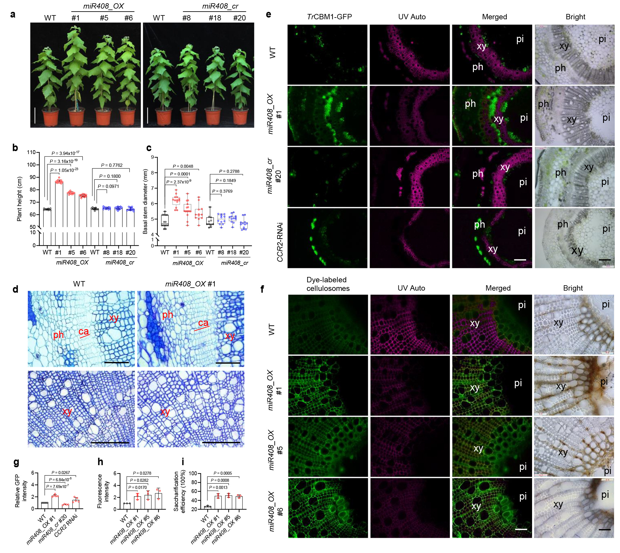 Figure 1. Overexpression of miR408 enhances biomass yield, cell wall accessibility and saccharification efficiency in poplar.