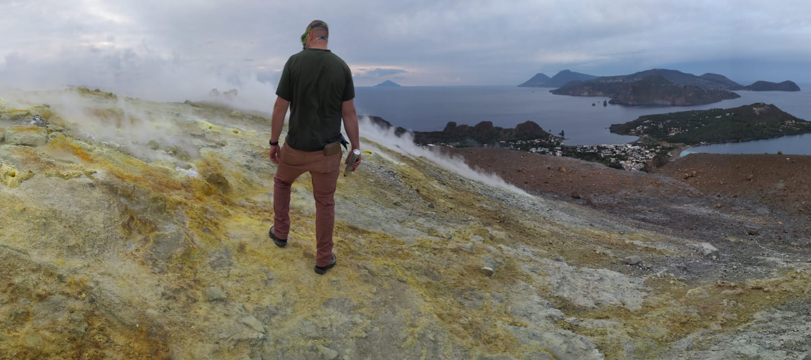 Hydrothermal alteration is widely recognized as a key process in weakening volcanic rocks, yet it remains difficult to account for in assessments of volcanic slope stability. Much of what we know about alteration-driven weakening comes either from laboratory experiments on a limited number of samples or from observations made after a collapse has already occurred. At Vulcano Island, altered ground is easy to identify at the surface, particularly around the fumarole fields and along the crater rim, but many of the most affected areas lie on steep, unstable flanks that are difficult or impossible to access safely. Standing on the crater rim (Fig. 1) , it was obvious where alteration was present, but far less clear whether those visual changes actually translated into mechanical weakness. Bleached or discolored surfaces are often assumed to be weak, yet appearance alone does not tell us how a rock will behave when stressed. This gap between what we can see and what we can measure motivated the study.