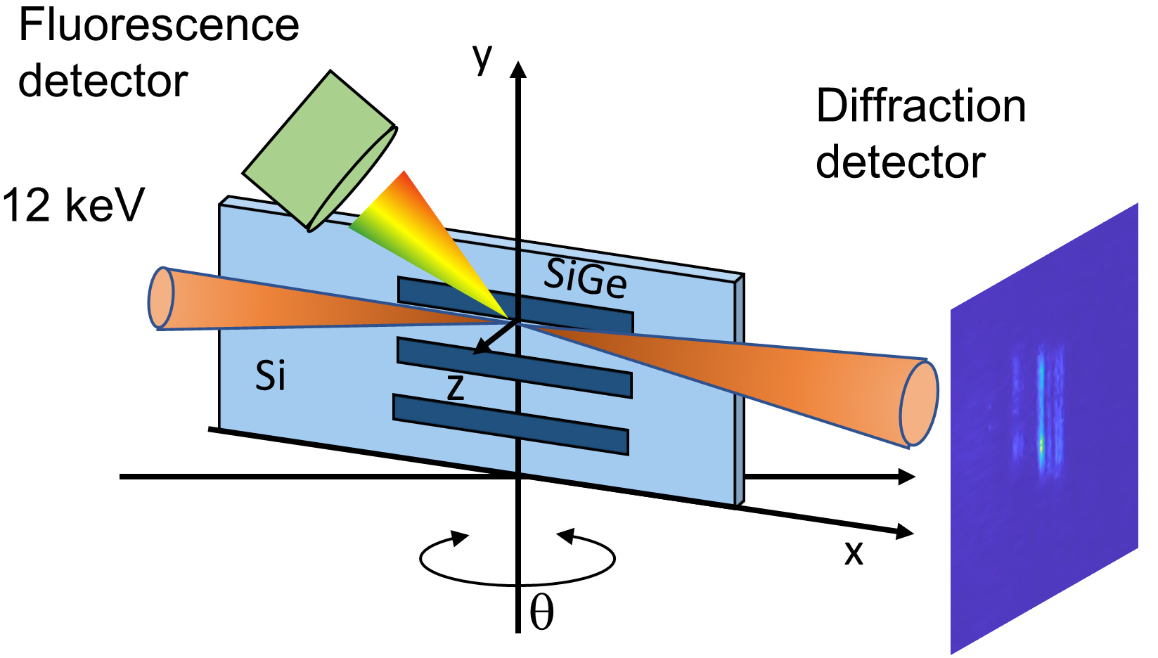 The use of synchrotron-based characterization has been integral to the efforts of IBM Research (https://research.ibm.com) since the opening of the National Synchrotron LightSource at Brookhaven National Laboratory 4 decades ago. The ability to probe the depth-dependent properties of materials non-destructively represents a key asset of such measurements. The current collaboration with scientists at NSLS-II (https://www.bnl.gov/nsls2), a state-of-the-art, third-generation synchrotron source, has enabled us to investigate a variety of structures with unprecedented brightness and resolution. At the Hard X-ray Nanobeam (HXN) beamline, by exploiting in-house developed nanofocusing multilayer Laue lense optics, the beamline scientists are able to generate a spot size of approximately 12 nm for imaging applications. Figure 2 depicts the geometry used in the reciprocal spacing mapping of Si / SiGe nanosheet structures fabricated at the IBM Albany facility, where a 12 keV photon energy was used to map deformation across a spectrum of feature widths. Distributions of lattice spacing and rotation were quantified from individual nanosheets ranging from 40 nm to 1000 nm wide.