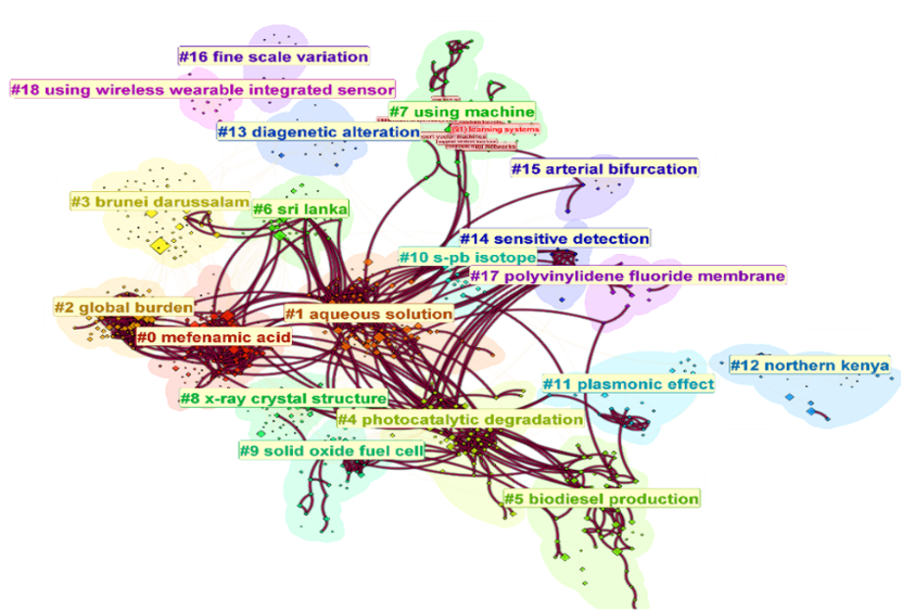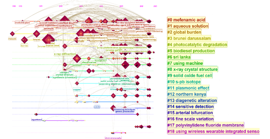 We began by collecting data from Scopus, one of the largest academic databases, focusing on research published by scholars affiliated with Brunei-based institutions. This gave us a massive dataset of 7,572 documents—including journal articles, conference papers, book chapters, and more. To make sense of this information, we turned to CiteSpace, a powerful visualization tool that helps identify research clusters, co-citation networks, and keyword trends over time.