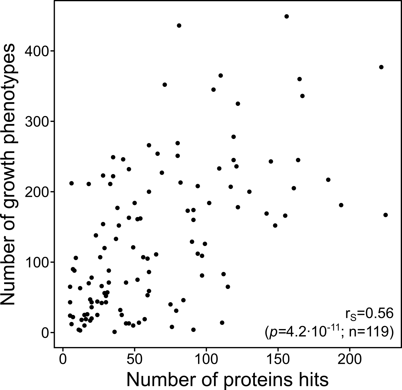 Finally, we compared our data with previously acquired growth phenotypes for these mutants. In general, we saw that mutants that had a larger proportion of the proteome affected were more sensitive to any external perturbation . In addition, we could explain some phenotypes that were caused by changes on the proteome that go beyond the deleted gene. For example, we saw that low levels of the multidrug transporter MdtK were responsible for the sensitivity of some mutants to the antidiabetic drug metformin—these mutants target processes that are not directly related with the regulation of MdtK.