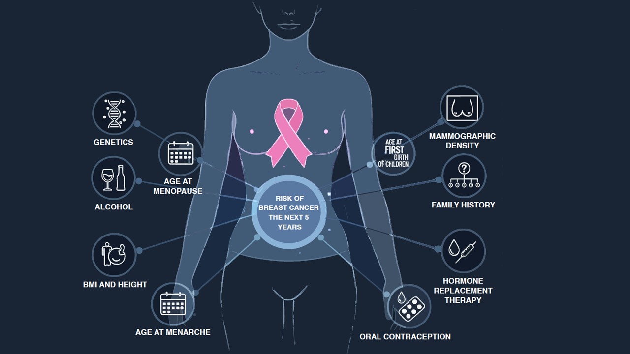 The most comprehensive risk model combines a woman’s age, genetic variants, family history of breast cancer and other cancers, lifestyle, reproductive history, use of oral contraception/hormones and mammographic density into a single absolute risk of getting breast cancer within the next 5 and 10 years.