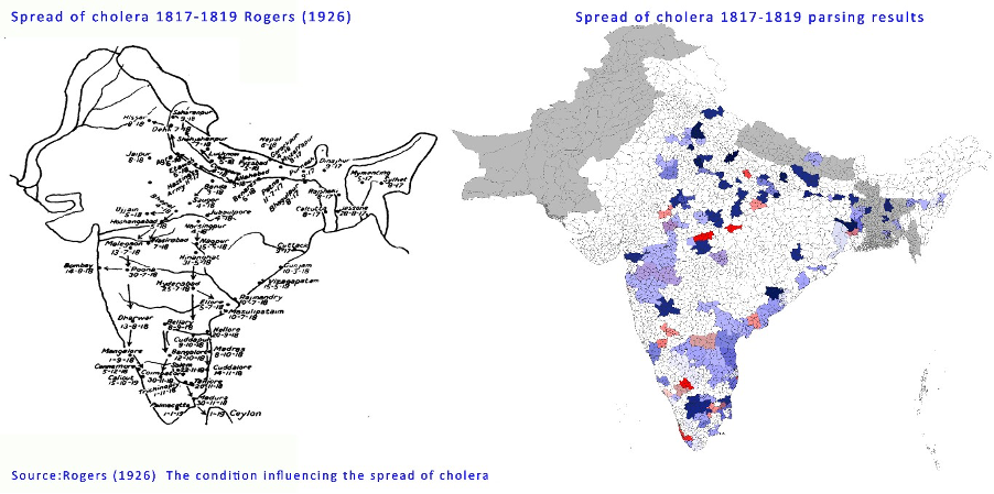 Despite this, our method allows to recover the spread of the pandemics and its dynamics. In Figure 1, we show how our reconstructed data fit with ancients maps produced by Leonard Rogers in 1926.