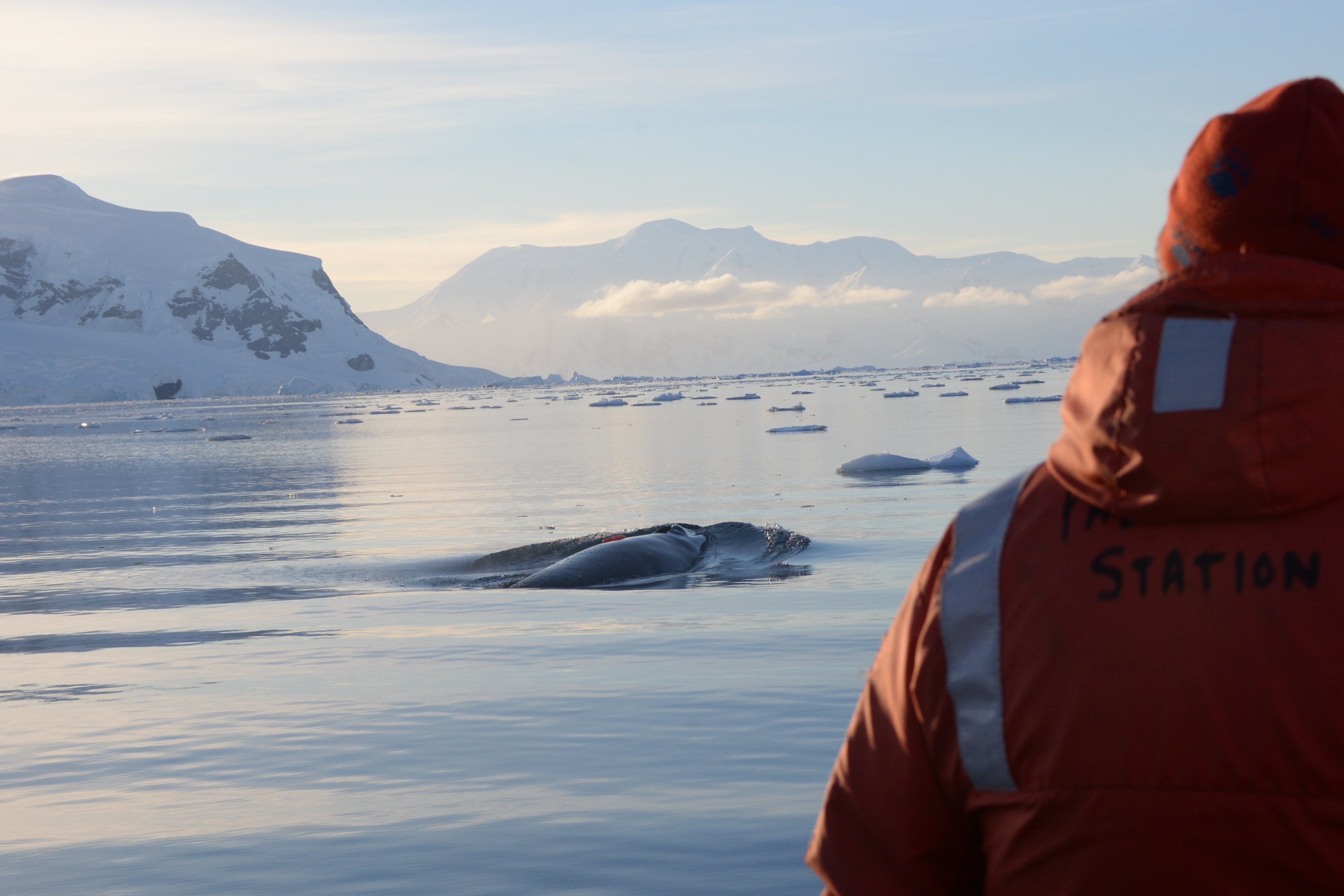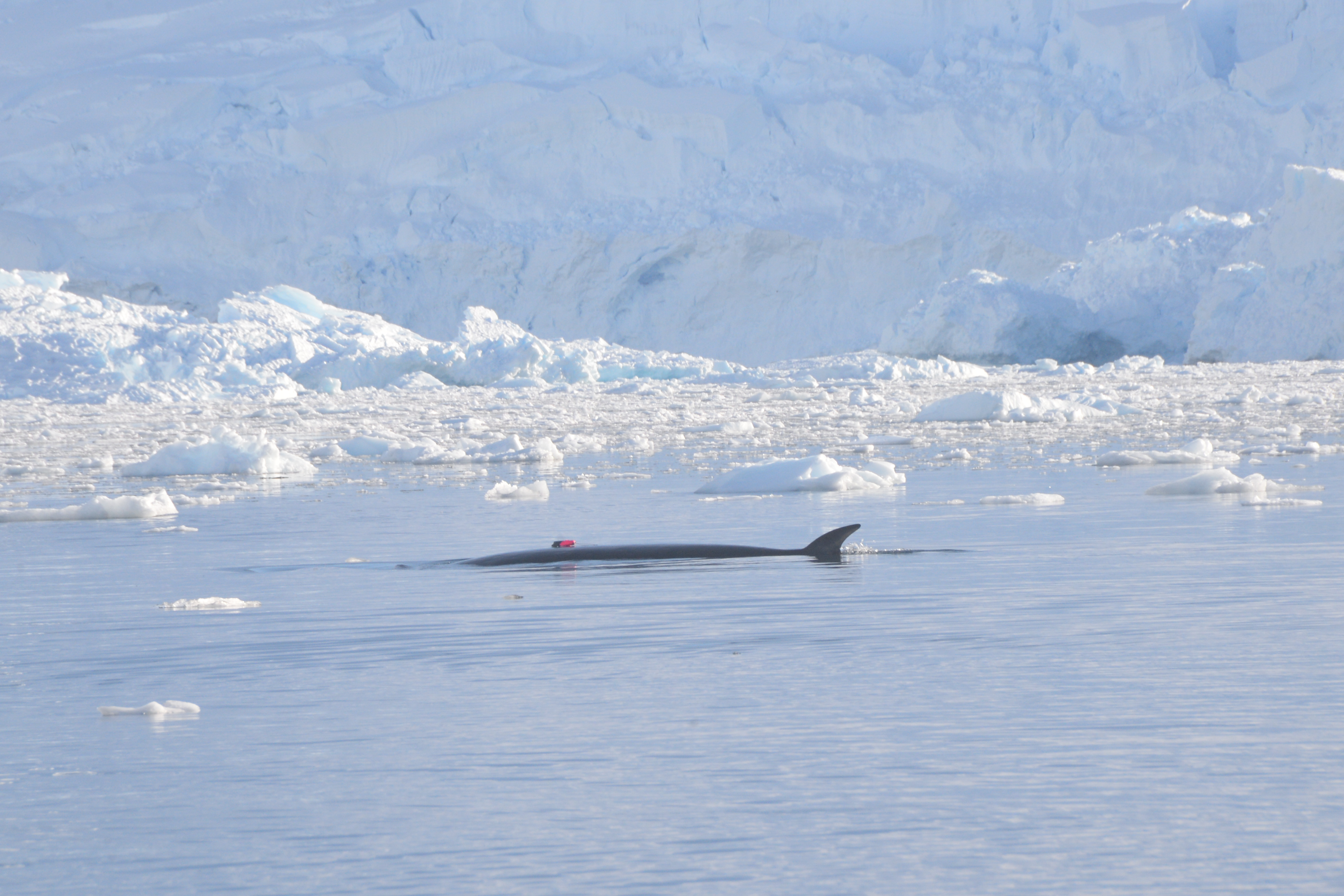 In 2013, my colleague Ari Friedlaender deployed two acousonde tags on Antarctic minke whales foraging in a group near sea ice. The high resolution data from those tags first gave us a hint of the extremely high foraging rates these animals are capable of. In 2018 and 2019 scientists from UC Santa Cruz, Stanford University and Duke Marine Labs teamed up to attempt to gather additional data. It turns out that in the fjords of the West Antarctic Peninsula, minke whales were more approachable, particularly when they were in groups of 2-5 animals. Our team deployed and recovered 29 tags with high resolution data, and used Unoccupied Aerial Vehicles (drones) to measure their lengths.
