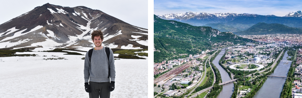 There’s something about mountains. (left) A photo I took of myself on Mt. Asahidake, Japan, after the conference. It was during this time I began the initial work on the idea. (right) The CEA-Leti campus in Grenoble, in front of the Belledonne mountain range.