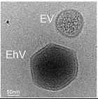 Cryo-TEM image of a virus (EhV) and a vesicle (EV)