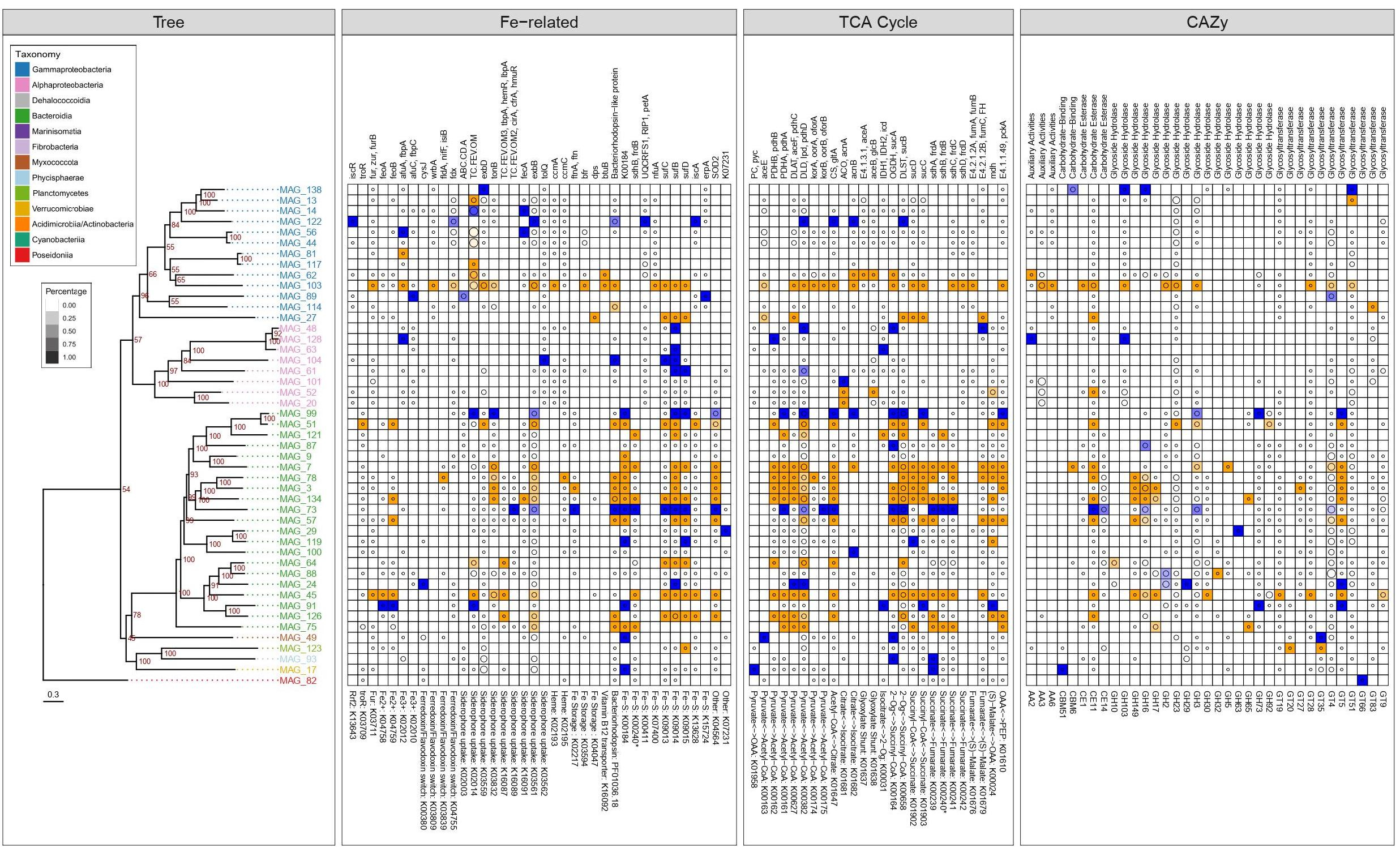 We have previously shown that the composition of prokaryotic communities in the iron-fertilized region was distinct to that in surrounding so called High-Nutrient-Low-Chlorophyll Southern Ocean waters (Landa et al. 2015) and a gene-specific metatranscriptomics approach illustrated that various prokaryotic groups used distinct iron-related pathways (Debeljak et al. 2019). However, to what extent iron and carbon cycling is linked to taxonomy was an open question. We took advantage of the recent developments in the field of bioinformatics and explored a high-throughput sequencing data set to address this issue.
