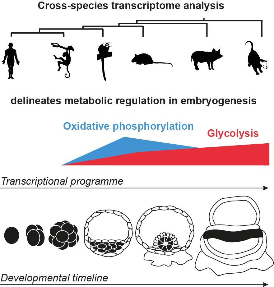 In summary, we have compiled several single-cell RNA-seq datasets, using transcriptional profiling to infer metabolic changes in early mammalian embryos. Our work has shown that the dynamics of energy metabolism in the early mammalian embryo are surprisingly similar across six different species, despite different timing and mode of implantation. We hope that our work will serve as a resource for researchers studying metabolic changes in mammalian embryogenesis.