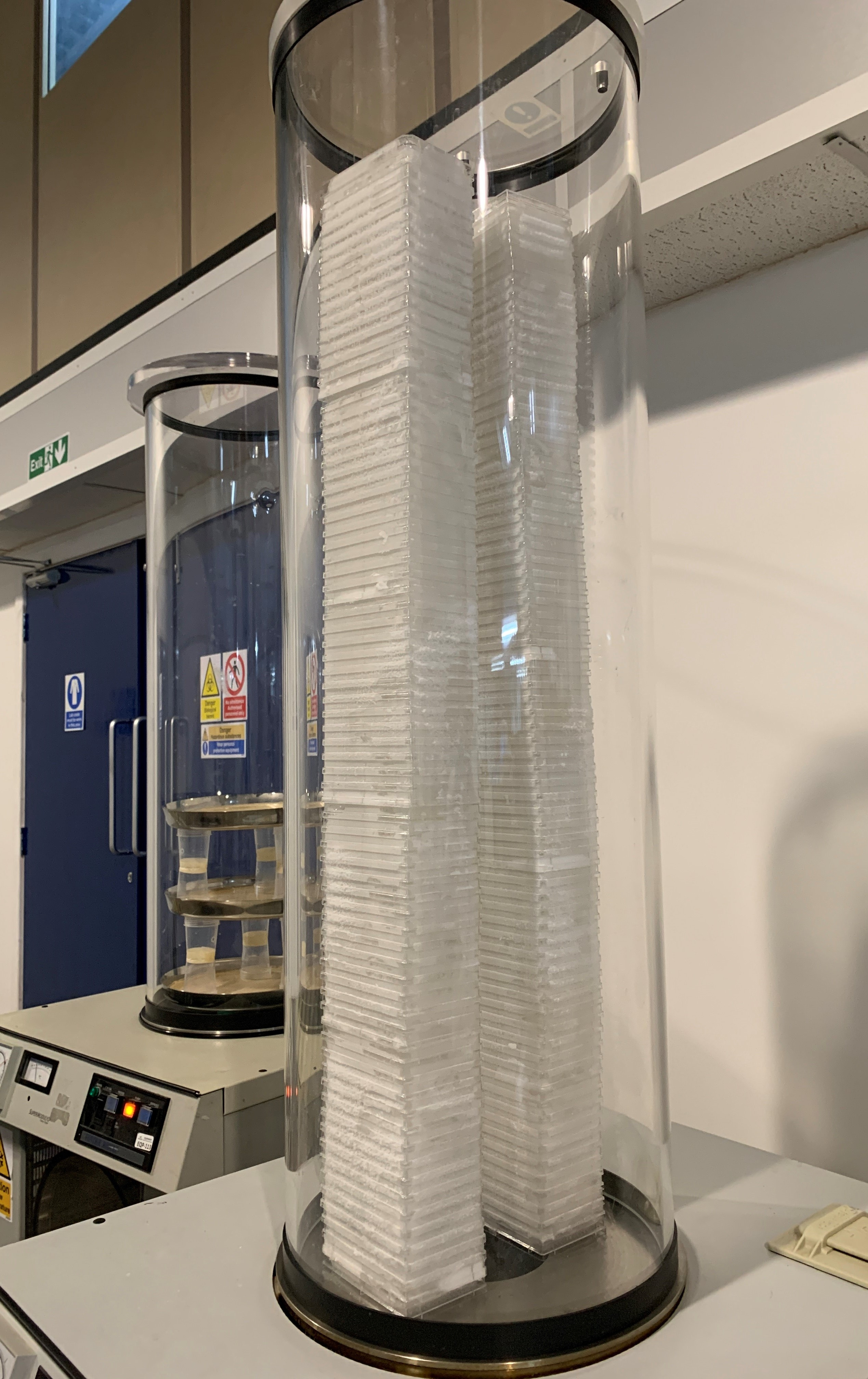 Figure 2- Plate lyophilisation process. A stack of 384-well microtitre plates being freeze-dried at Prozomix Ltd.