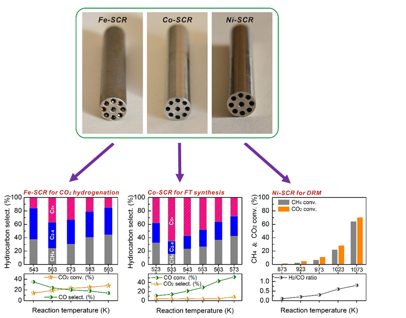 Figure 1: 3D printing self-catalytic reactors for FT synthesis, CO2 hydrogenation and CO2 reforming of methane.