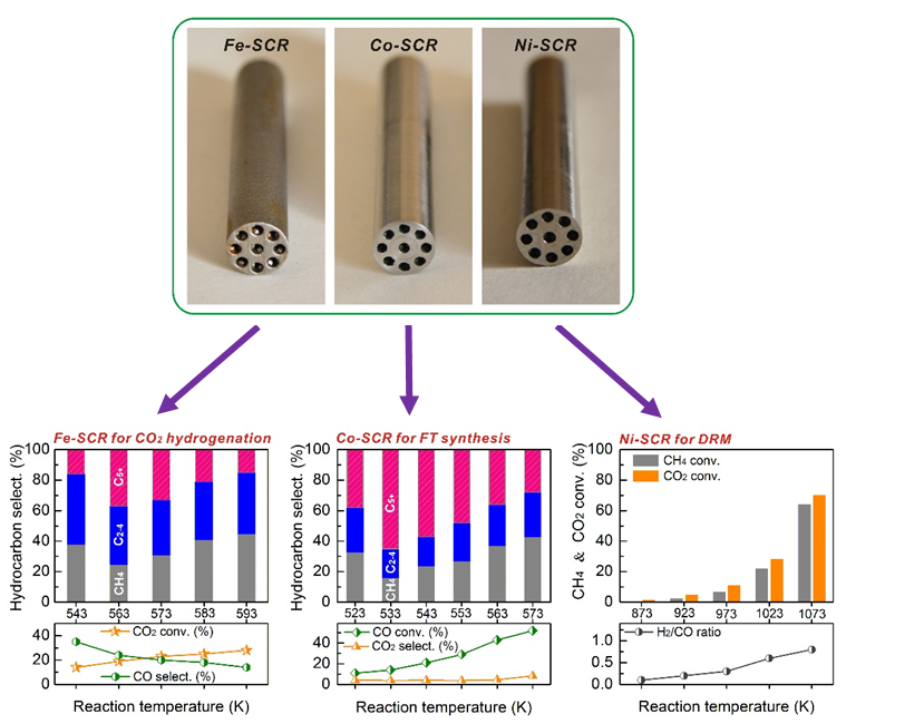Figure 1: 3D printing self-catalytic reactors for FT synthesis, CO2 hydrogenation and CO2 reforming of methane