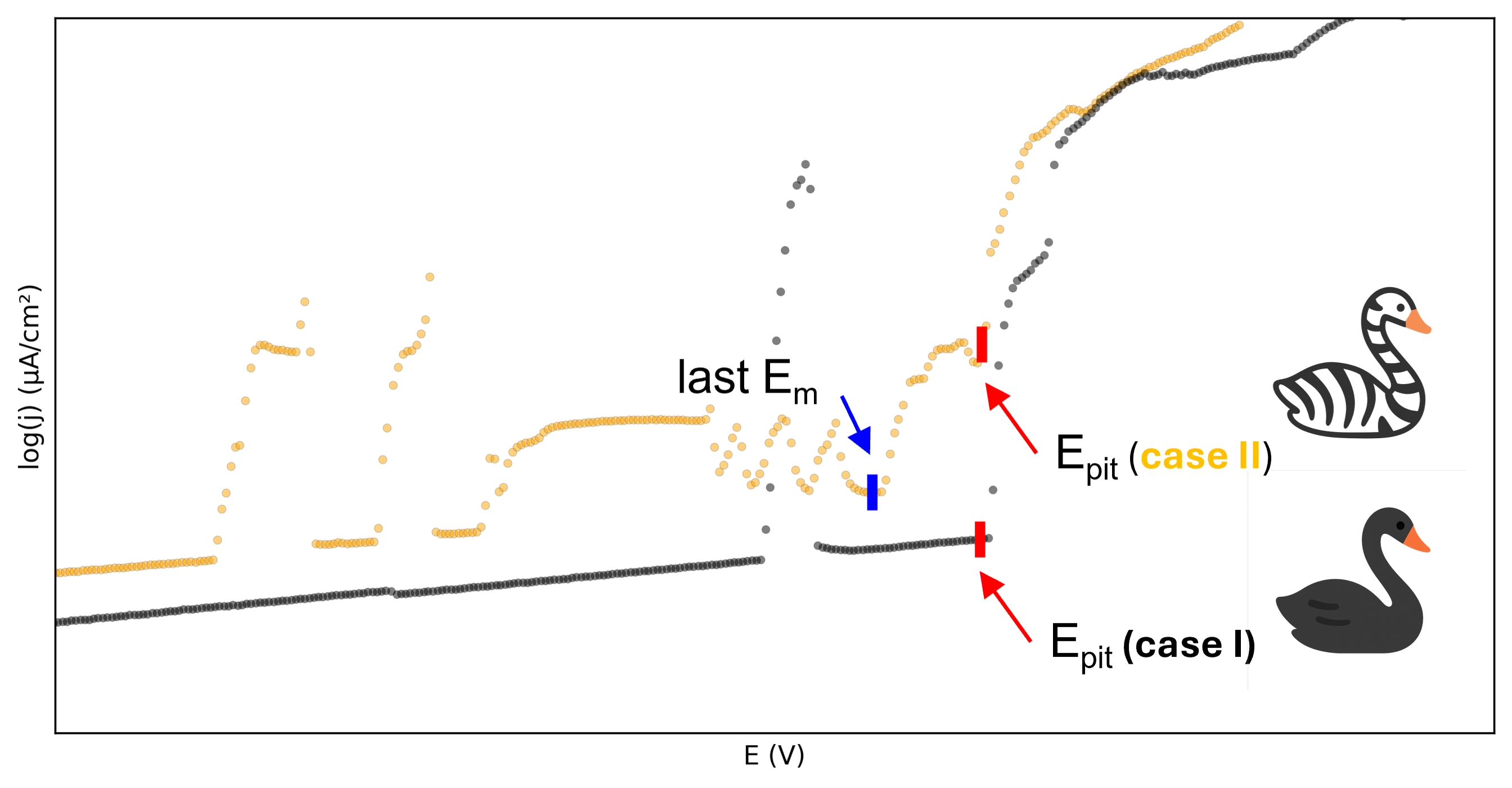 While any corrosion scientist could tell you these two pathways exist conceptually, here's the shocking truth: the field has never distinguished between them in data analysis. For decades, we've treated all critical pitting potentials (Epit, also known as pitting potential) the same, regardless of whether the current density suddenly jumped from a quiet passive state or emerged from a battlefield of pre-existing metastable events.